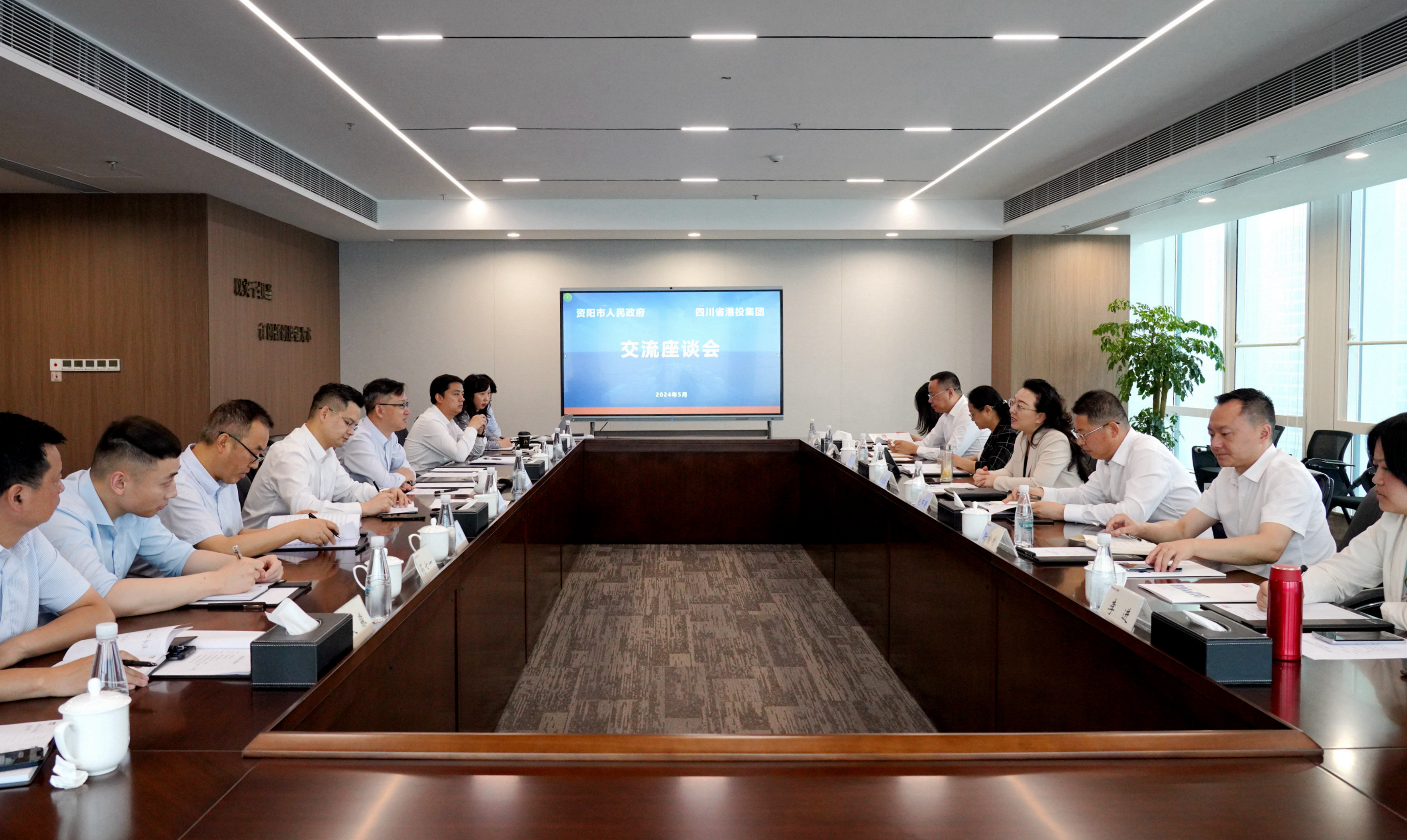 5月7日,资阳市政府副市长张建红一行到访省港投集团,双方就进一步加强合作、共赢发展进行座谈交流。集团公司副总经理阮昌益出席座谈交流。