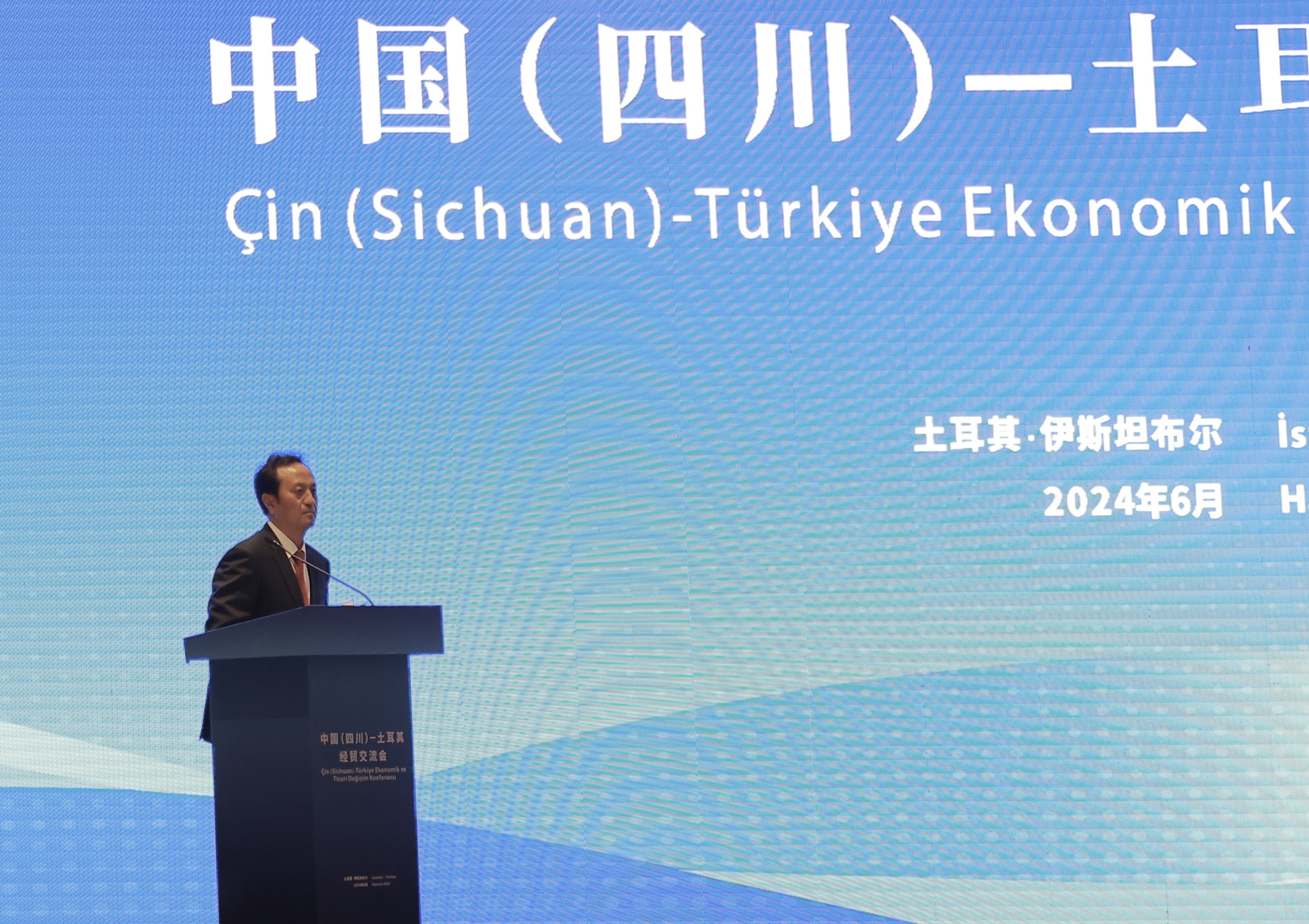 6月3日,“中国(四川)——土耳其经贸交流会”在土耳其伊斯坦布尔举行。土耳其伊斯坦布尔省副省长安拉尔、中国驻土耳其大使刘少宾、中国驻伊斯坦布尔总领事魏晓东以及来自政府、商协会、企业等机构的代表共160余人。