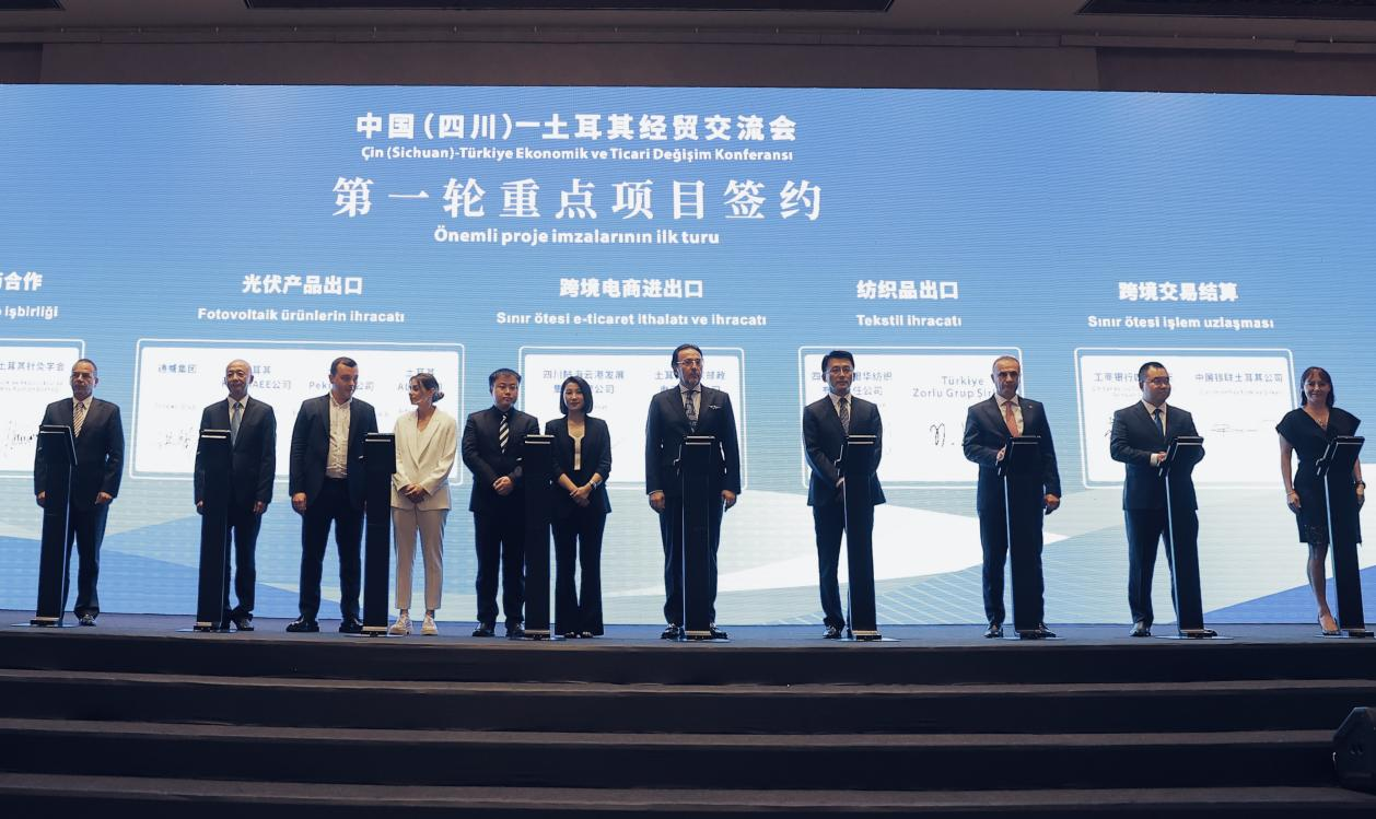 现场,陆海云港公司分别与土耳其国家邮政PtteM公司签订了《物贸合作协议》《双园海外仓合作协议》。《物贸合作协议》签署双方,将重点围绕中土合作范围内的产业投资、国际贸易进出口、多式联运、航空包机、跨境电商、海外仓、海关报关清关等综合项目开展深入协同。结合四川、土耳其产业优势和物贸资源,围绕跨境电商综合服务体系建设,在跨境供应链、货物进出口等方面展开进出口贸易业务合作。《双园海外仓合作协议》签署双方,将充分发挥位于土耳其伊斯坦布尔的“四川商品(土耳其)保税仓”集散中心和位于四川省天府新区的“土耳其商品(四川)保税仓”集散中心优势,双园协同在国际物流、海外清关、仓储配送、国际多式联运、提供仓储服务等方面展开合作,双方将为对方提供全球空运服务、海外仓储服务、土耳其/中国物流服务、供应链管理服务、仓储操作服务。