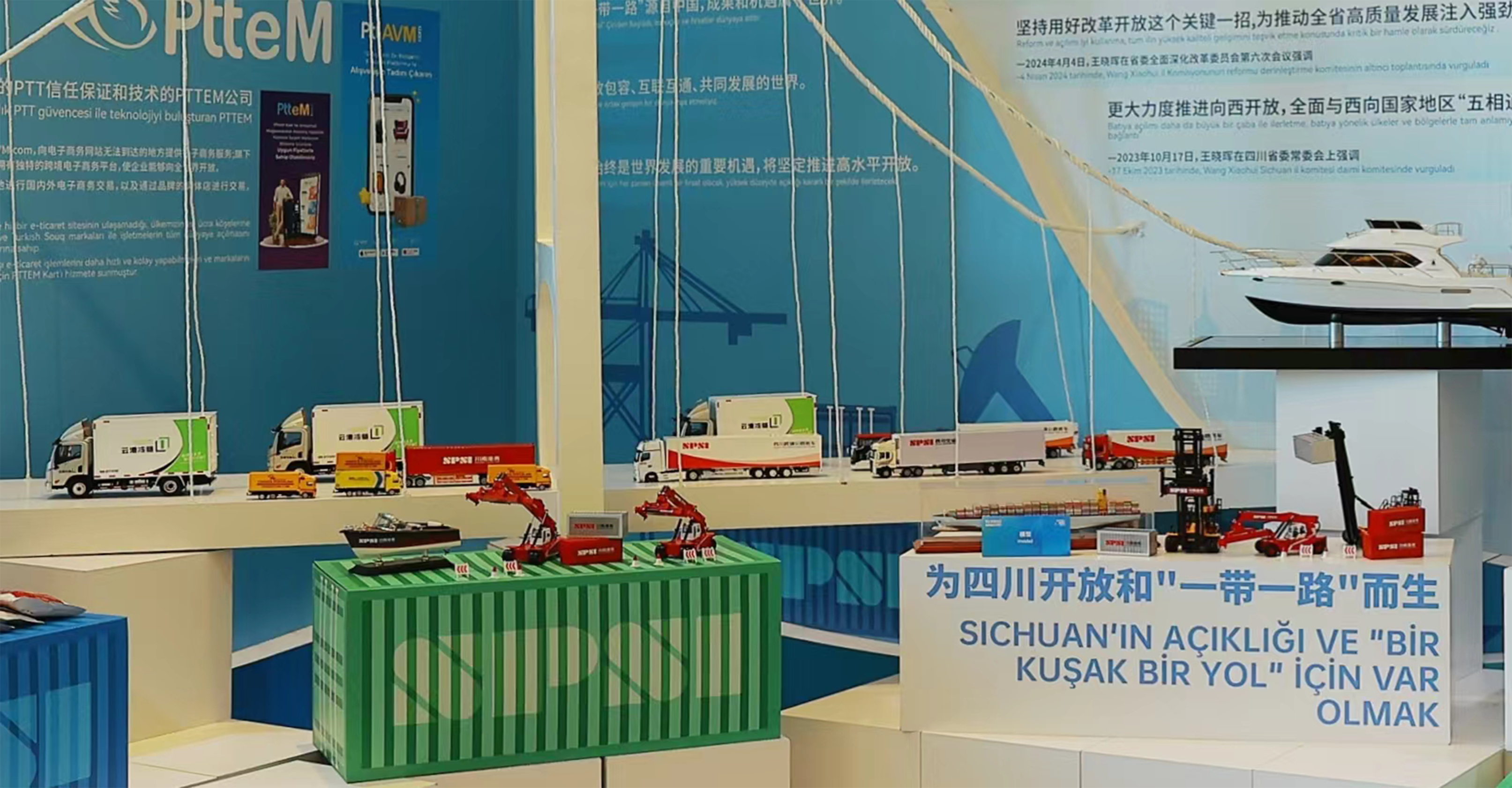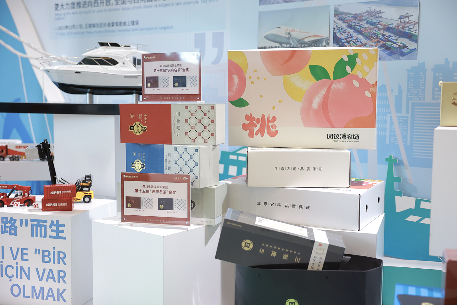 “领行·四川”:主要展示十家各个行业的骨干型企业在对外开放领域取得的发展成效,其中部分企业已与土耳其企业展开经贸合作往来。“智造·四川”:主要展示四川工业产品、化工产品、家居用品等,近年来以数字化转型引领制造业高质量发展,四川制造业发展速度快,崭露头角,形成工业挑大梁态势,此次通过展台展示产品的形式,充分彰显四川制造业的“硬实力”。“健康·四川”:主要展示四川中医药药材及产品,四川享有“中医之乡、中药之库”美誉,中药材资源富集,在中国中医学界素有“无川药不成方”的说法,川药品种多、数量大,质量好、疗效高。“百味·四川”:主要展示“天府之国”的美食产品,包括川酒、川菜调味品、川茶等。“锦绣·四川”:主要展示四川的非物质文化遗产实物作品,包括新锦绣、成都漆艺、道明竹编、夹江年画、蜀锦、蜀盏、棕编等。将文化符号转变为了新的艺术表达,让世界看到四川传统文化。