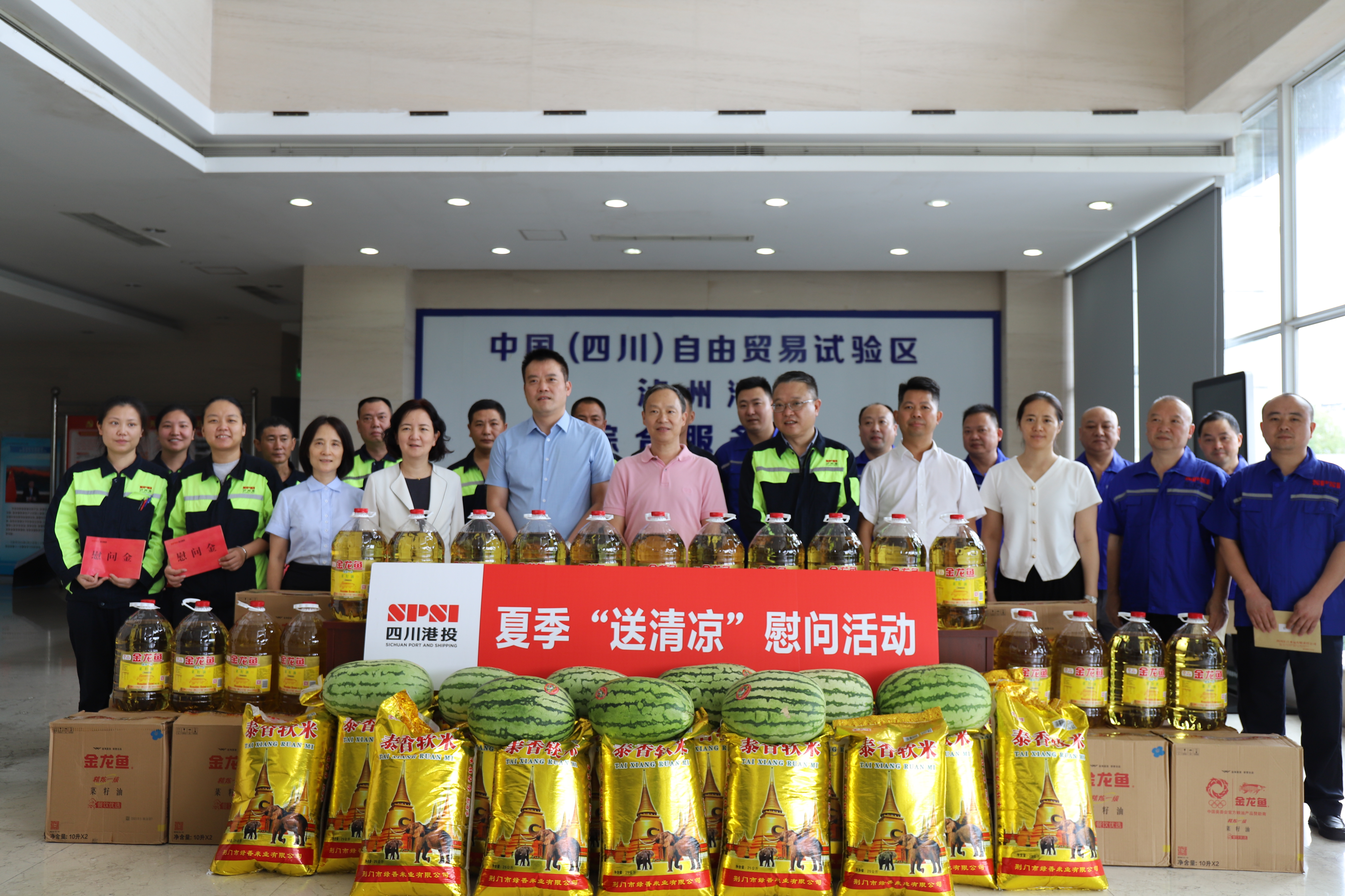 陆正才代表省港投集团看望了泸州港、长运公司一线的干部职工,对他们不畏酷暑、坚守岗位的工作作风给予肯定,为大家送上了慰问金及防暑降温慰问品,并亲切叮嘱大家在高温条件下要合理安排工作时间,科学分配工作任务,做好防暑措施,确保自身安全健康。