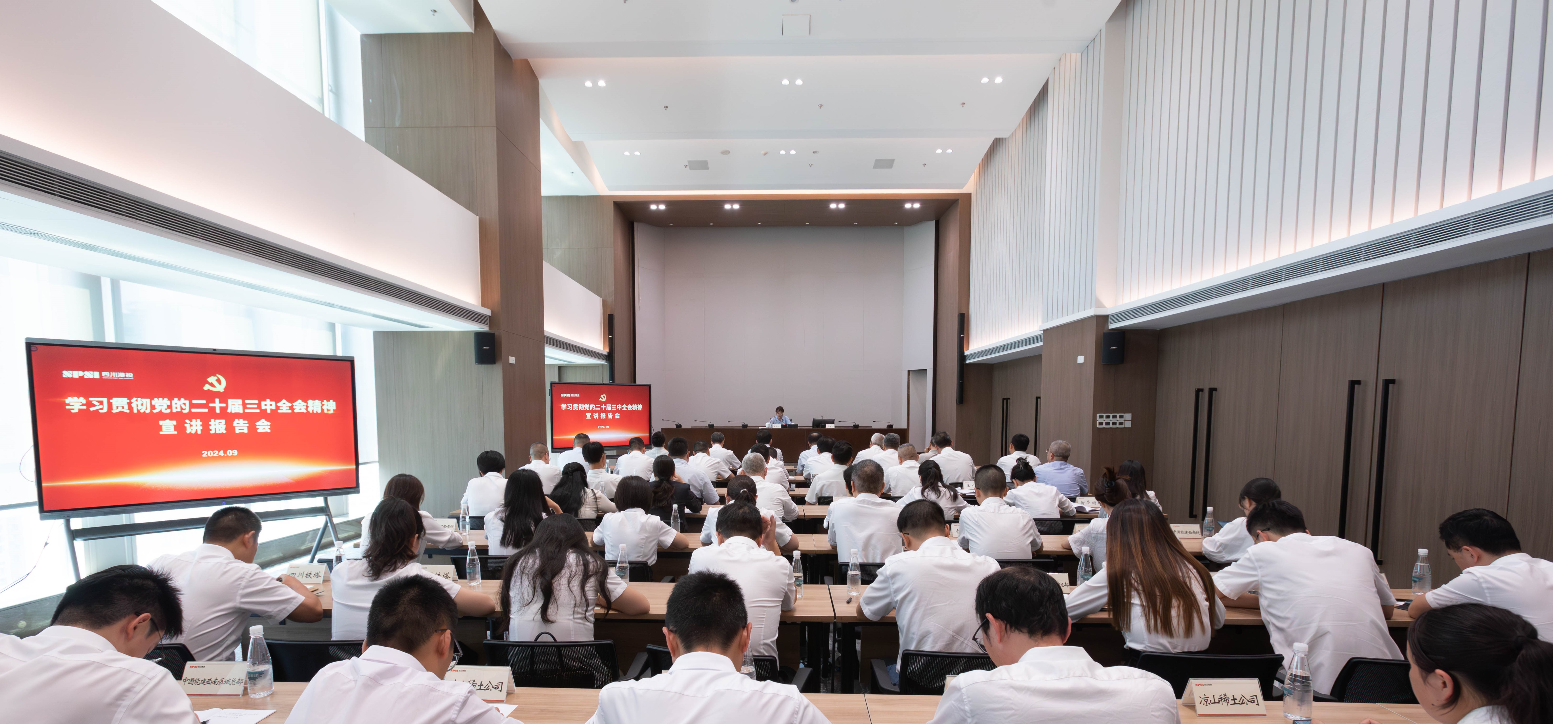 省港投集团、中国能建西南院、四川铁塔、中国能建西南区域总部、凉山稀土公司、国药四川、透平科技公司、成都金具公司、中水物资集团成都有限公司、四川资源集团10家在川央企和省属国企的领导干部及党员干部代表100余人聆听宣讲。