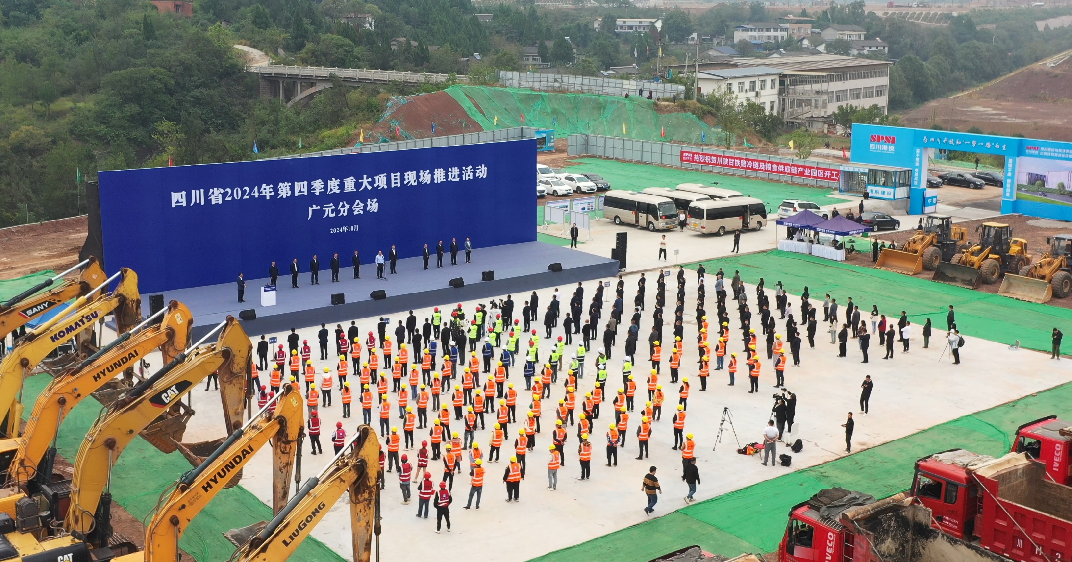 10月8日,四川省2024年第四季度重大项目现场推进广元分会场活动暨川陕甘铁路冷链及粮食供应链产业园项目开工仪式顺利举行。广元市委书记何树平出席活动并宣布开工,广元市委副书记、市长董里出席活动并讲话,省港投集团副总经理阮昌益出席活动并致辞,广元市委副书记许国斌主持活动。