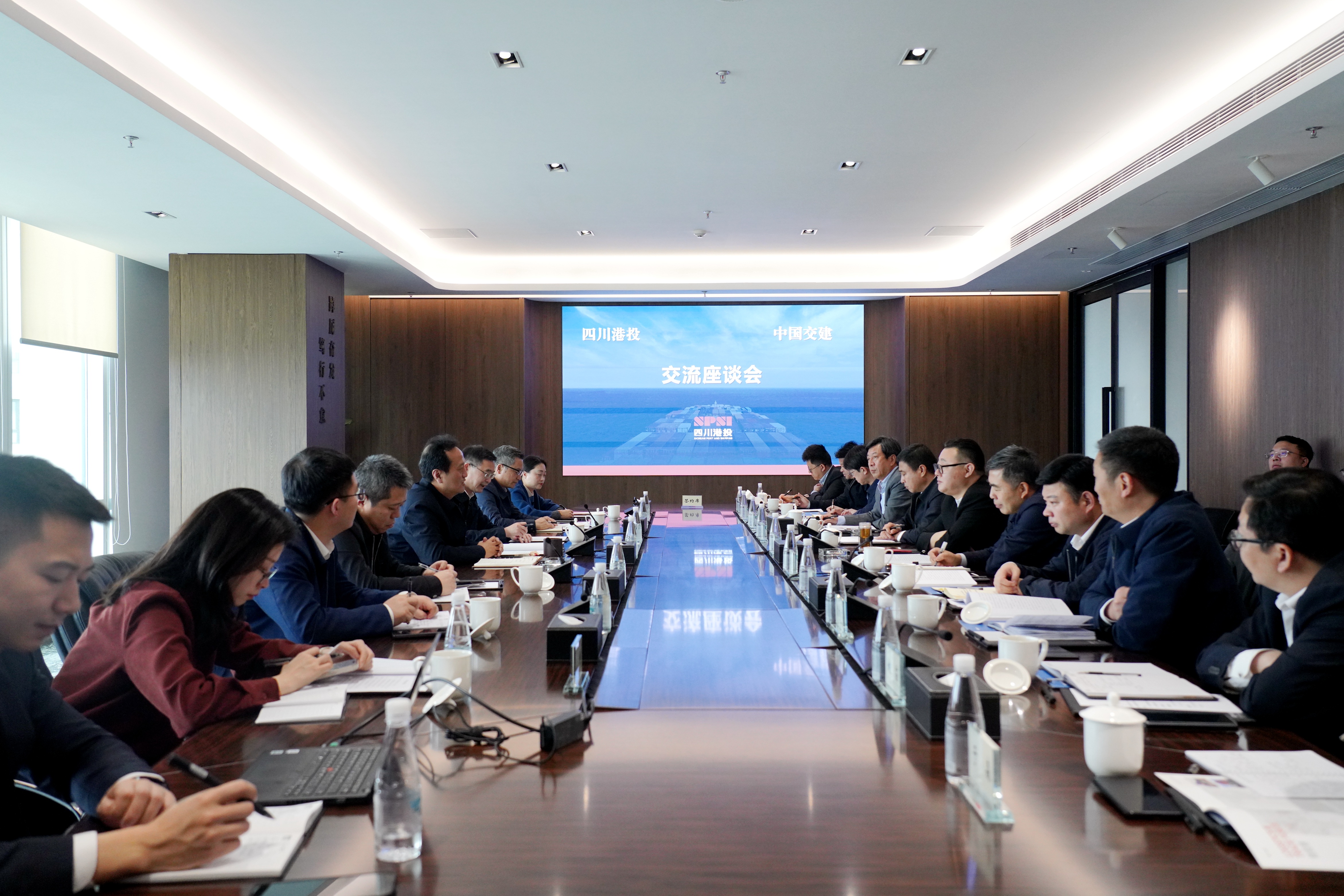 会上,杨军对中国交建一行到访表示欢迎,并介绍了港投集团的基本情况、职能定位、发展战略及业务布局。他指出,港投集团为四川省对外开放和“一带一路”而生,承载着省委、省政府赋予的“服务四川对外开放和内陆开放型经济高地建设”的重要功能。希望双方就城市综合开发、流域综合治理、境外业务、大宗商品贸易及供应链资源等方面建立深度合作关系,共同谋划开展相关投资项目。