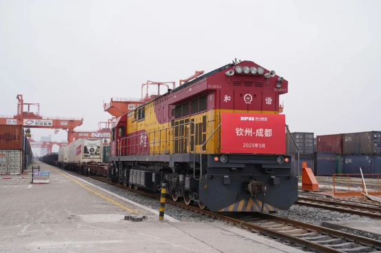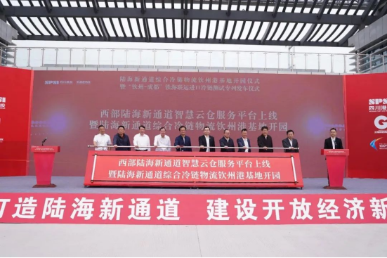 3月28日,陆海新通道综合冷链物流钦州港基地开园仪式暨“钦州—成都”铁海联运冷链测试专列发车仪式在广西钦州举行。集团公司党委书记、董事长杨军宣布西部陆海新通道智慧云仓服务平台上线暨钦州港冷链物流基地正式开园,钦州市委常委、常务副市长、一级巡视员钟恒钦宣布钦州-成都铁海联运进口冷链测试专列发车。