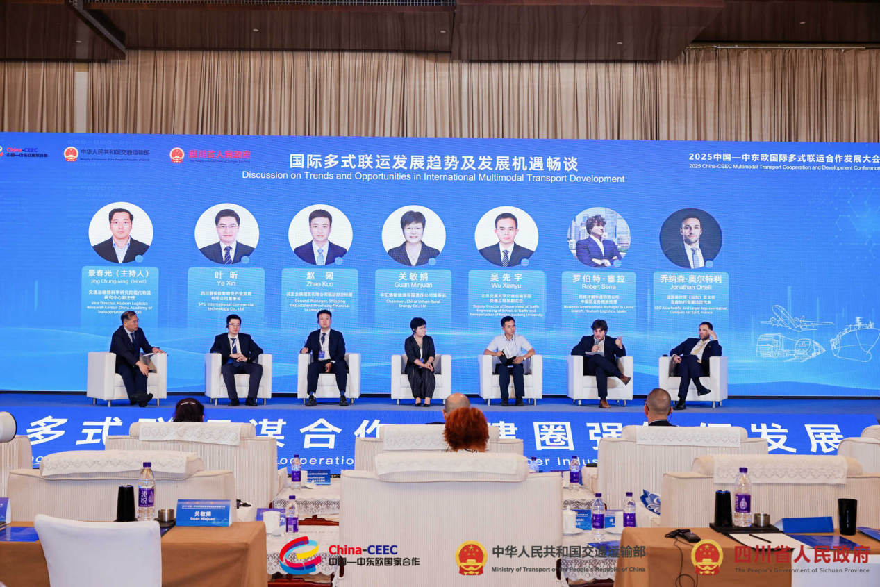 在随后的“2025中国—中东欧国际多式联运合作发展大会”上,四川省交通运输厅副厅长胡厚池、安博app在线登录副总经理阮昌益分别致辞。中汇港投能源有限责任公司董事长关敏娟、四川港投数智物贸产业发展有限公司董事长叶昕参加了中国—中东欧国际多式联运发展高端对话,围绕国际多式联运发展趋势及发展机遇作交流发言。