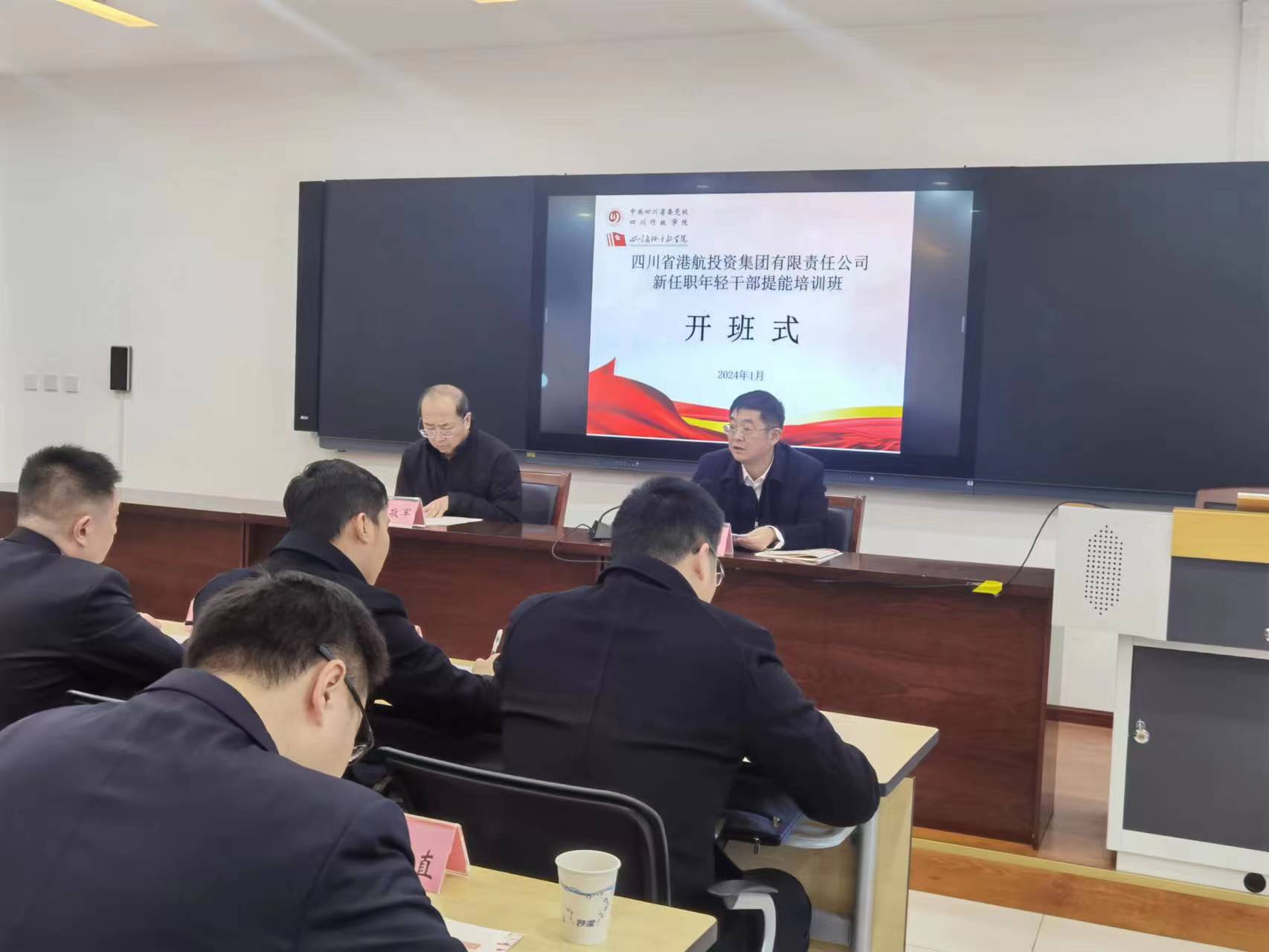 1月8日,省港投集团新任职年轻干部提能培训班在省委党校开班。集团公司党委副书记、董事许东明出席开班仪式并讲话。省委党校(四川行政学院)副校长(副院长)、一级巡视员肖敬军为本次培训致辞。