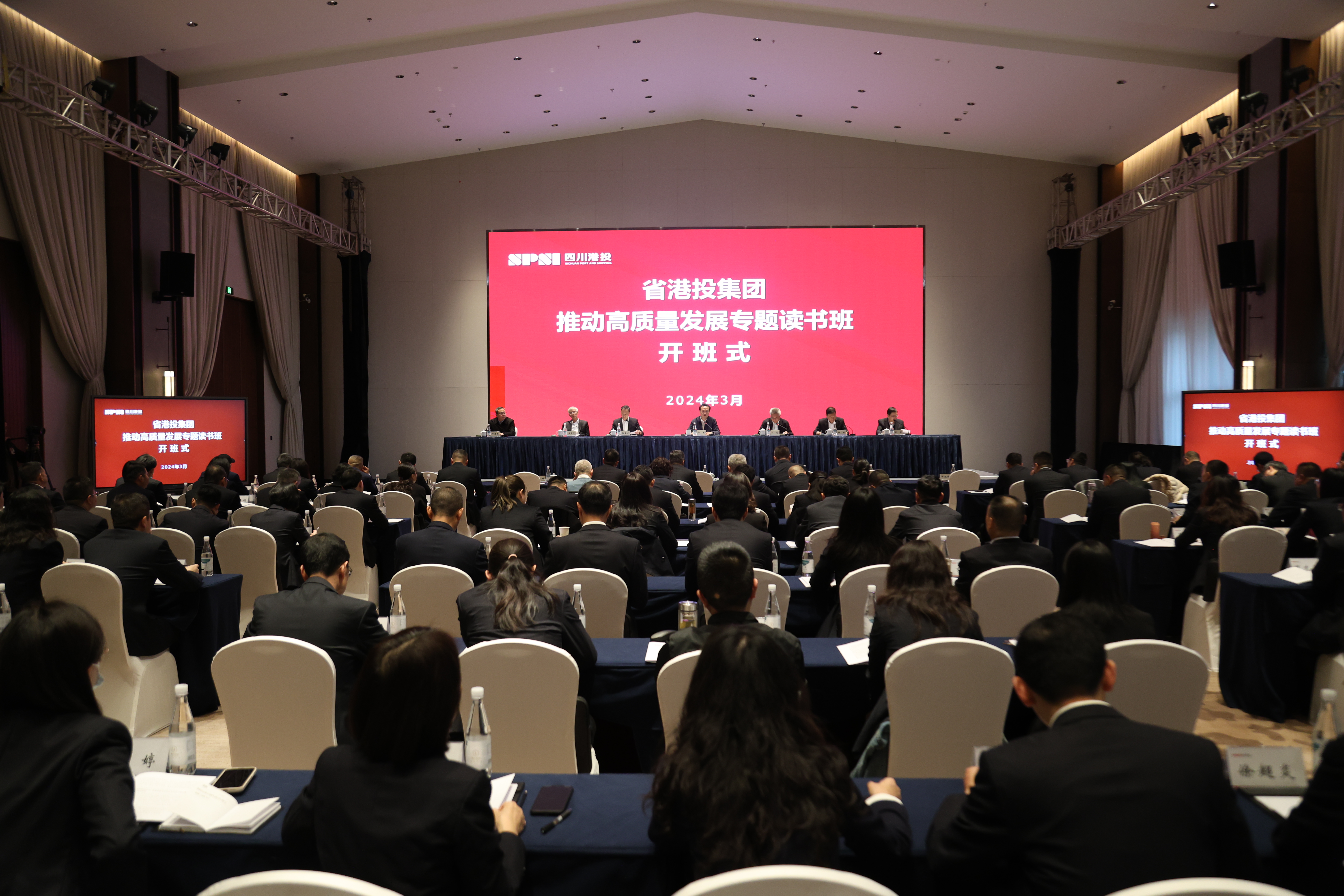 3月17日至19日,省港投集团举办推动高质量发展专题读书班。集团公司党委书记、董事长杨军在开班式上作主题报告,主持结业式并作结业讲话。他强调,要深入学习贯彻习近平总书记关于高质量发展重要论述和对四川工作重要指示精神,认真落实省委省政府安排部署,进一步凝聚思想共识、汇聚攻坚合力,以发展新质生产力为重要着力点,持续推动集团从高速发展向高质量发展迈进,以奋进之笔为中国式现代化四川篇章绘就港投画卷。