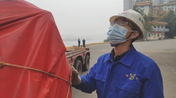 “注意站位,大件要过来了!”“上件的人注意哦,手机、钥匙不要带上去了。”11月25日的乐山大件码头吊装作业现场,车船嘈杂的轰鸣声中,不时传来这样的声音。公司很多年轻员工笑称,自己来公司后大件作业一直是这样的场景,简直可以说是在叮嘱声中成长起来的。