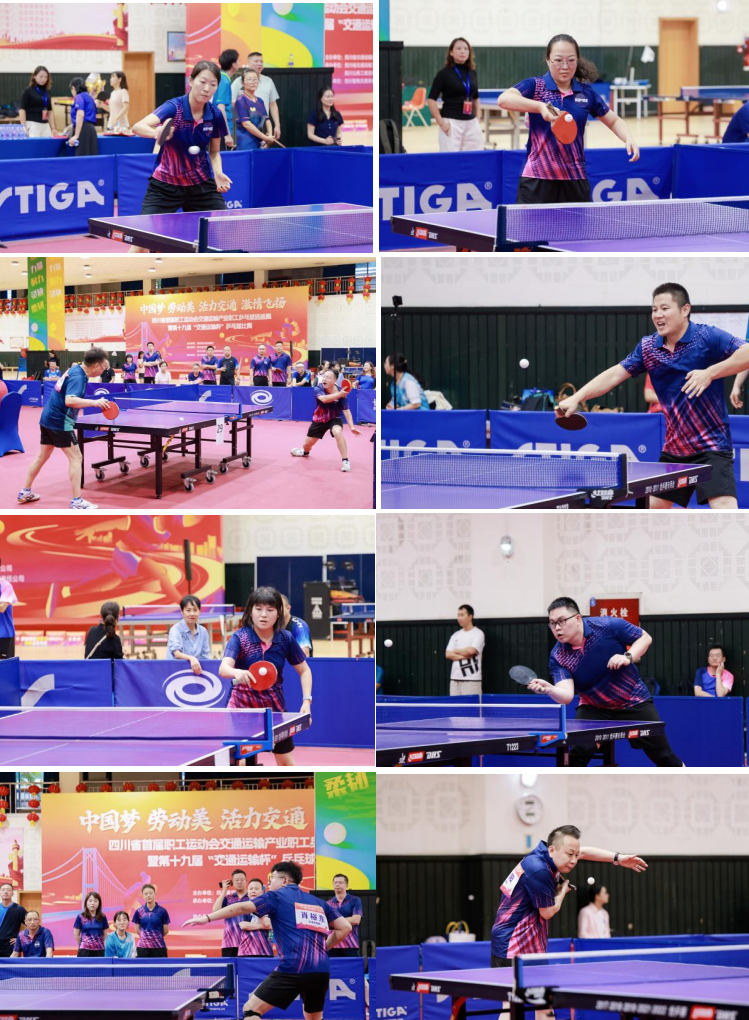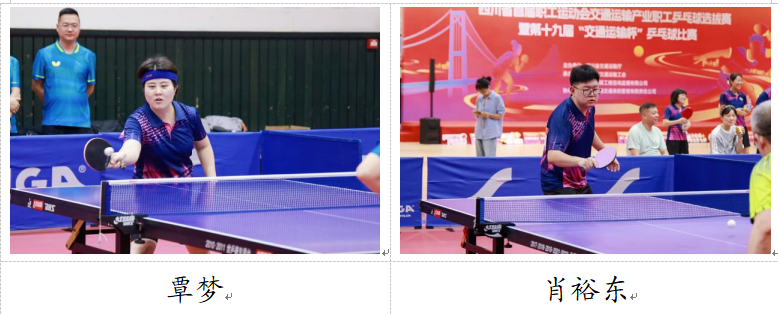 在单打比赛中,集团代表队队员们精神饱满,斗志昂扬,在球台上灵活移动,挥洒汗水,巧妙的发球、精准的拉吊、有力的扣杀层出不穷,现场气氛紧张热烈,精彩场面频现。集团总部覃梦凭借过硬的技术和稳定的心态,在遭逢营山公路局、交通运输厅等单位的强势选手时从容应战,获女子单打第五名;四川交运肖裕东一路稳打稳扎、精彩频出,闯关数场淘汰赛,获得男子并列第五名。