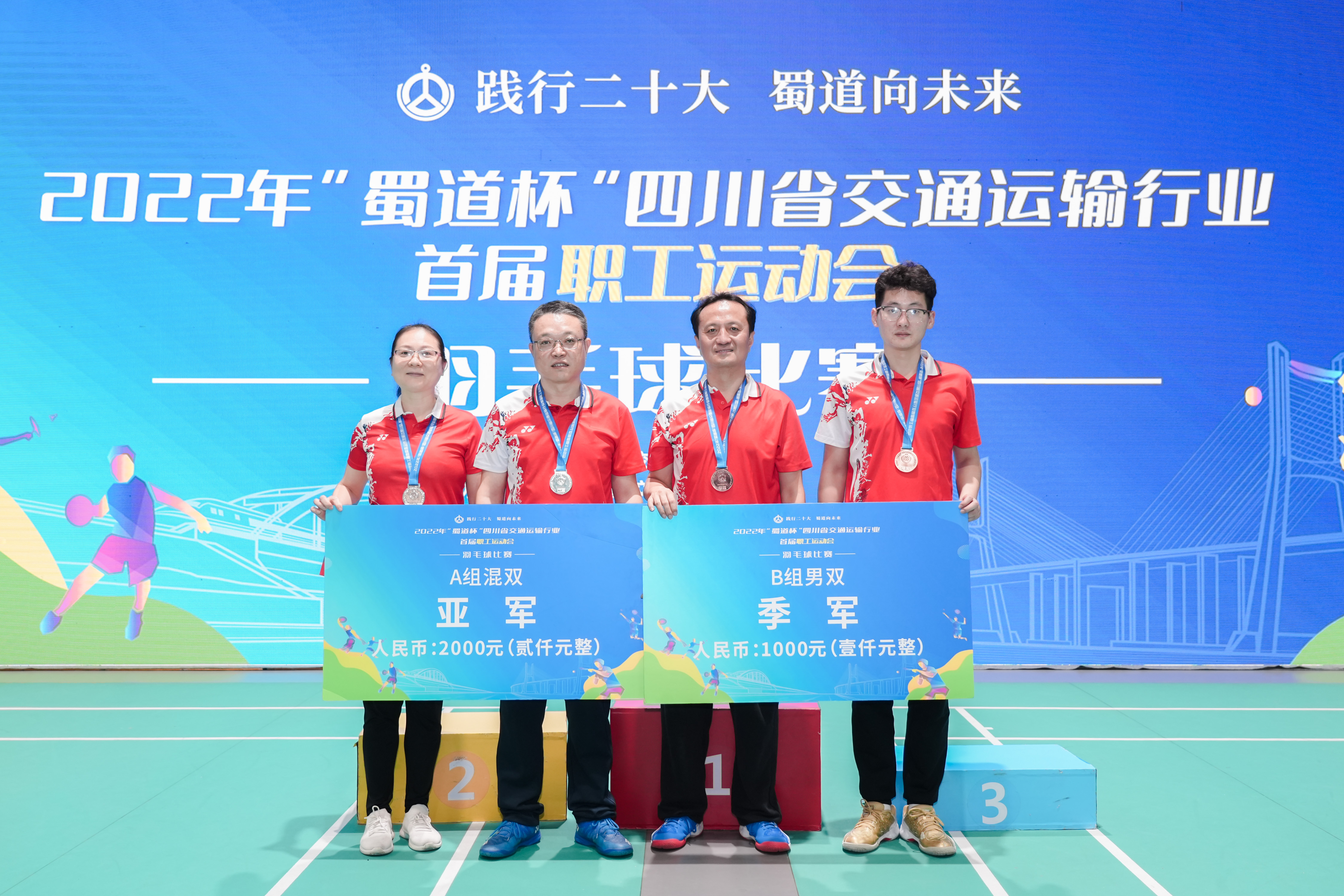 11月1日至3日,由省交通运输厅主办的2022年“蜀道杯”四川交通运输行业首届职工运动会羽毛球比赛在成都举行。在为期3天的赛程中,代表集团参赛的羽毛球选手获得混双A组银牌、男双B组铜牌的一银一铜佳绩,以及混双B组第5名、男单B组第6名、男单A组第7名等八强战绩,并取得B组团体第4名、A组团体第5名的优异成绩。