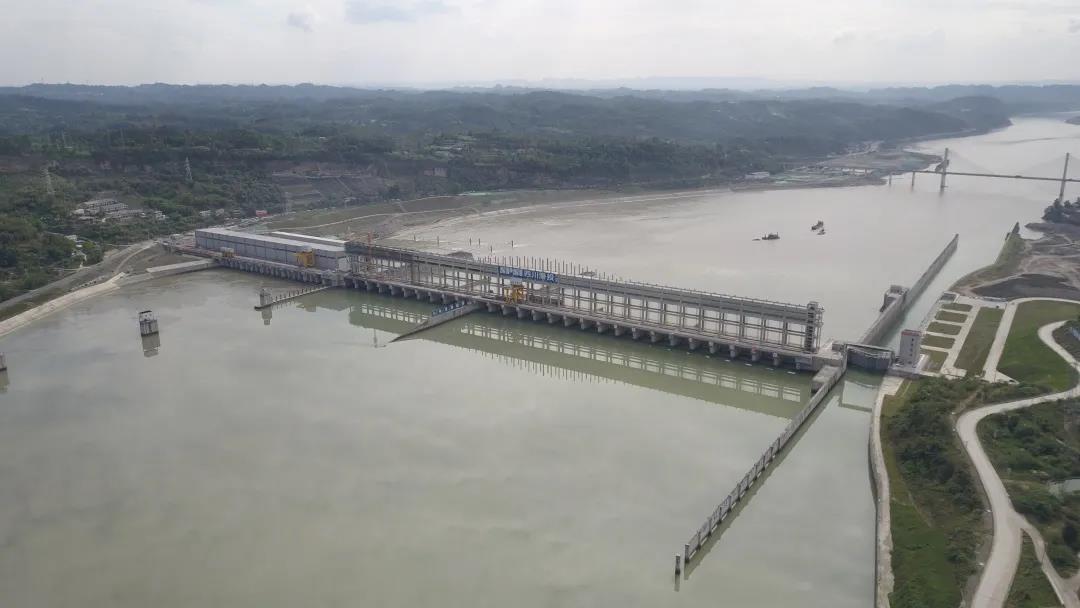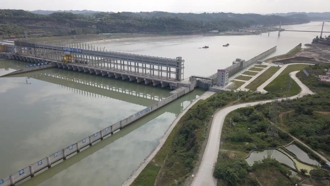 自2020年5月底首台机组并网发电后,枢纽已阶段性实现航运、发电、防洪和水资源调度等功能。航运方面,枢纽船闸已安全、稳定、高效试运行超过500天,通航船舶1226艘,过闸船舶总载重50.42万吨。保障了岷江重大件航道通畅,为构建西部陆海新通道有效地发挥了航电枢纽的功能作用。特别是在岷江枯水期,为保障重大件船舶运输,岷江公司多次配合乐山港航中心和船舶运输企业,在夜间和凌晨加大枢纽下泄流量,确保大件运输船舶能够安全及时进入长江。发电方面,克服了首次蓄水水头不足、新设备运行不稳定等因素,截至目前枢纽已完成上网电量6.939亿千瓦时,为全省注入了源源不断的绿色动能,为电网安全稳定运行贡献了力量。防洪和水资源调度方面,在2020年“8.18”特大洪水灾害中,为确保上游洪水顺利快速过境,枢纽28孔泄水闸全面开启泄洪以减少上游洪水淹没区域损失,采用世界领先的胶凝砂砾石筑堤技术的塘坝防护堤抵御了超强洪峰,确保了周边11000余居民及企业的生命财产安全,塘坝乡成为岷江流域下游段唯一未受洪灾影响的临江乡镇。