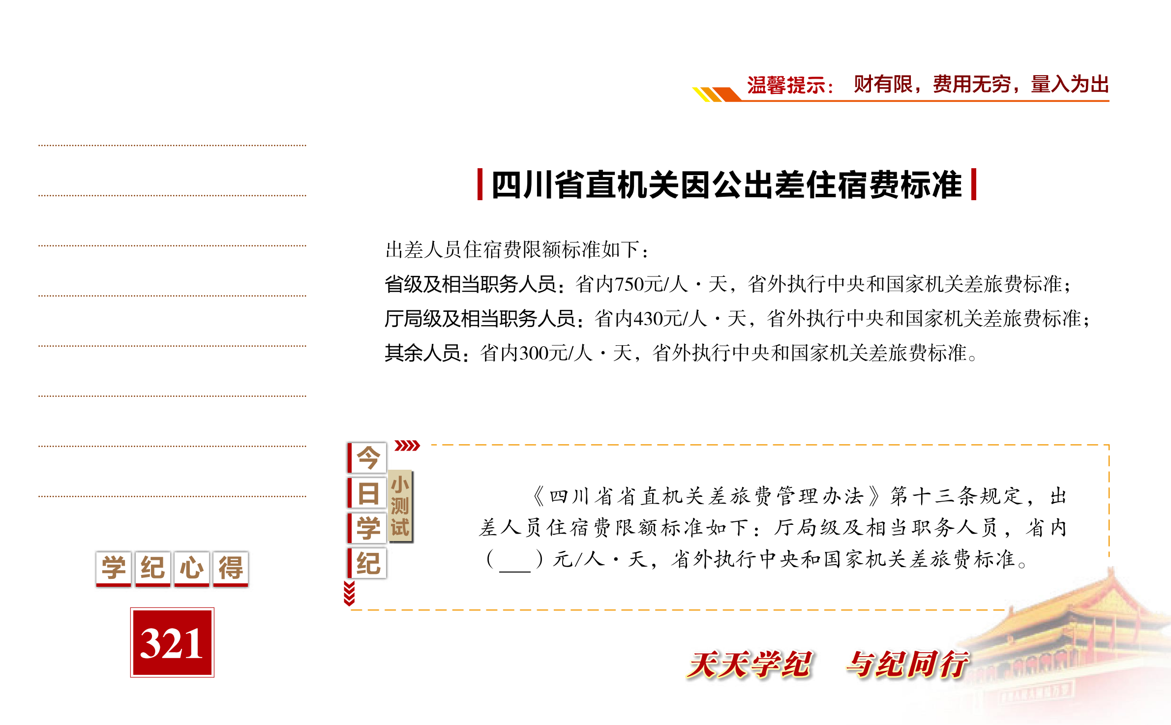 【天天学纪】2021年5月17日——四川省直机关因公出差住宿费标准