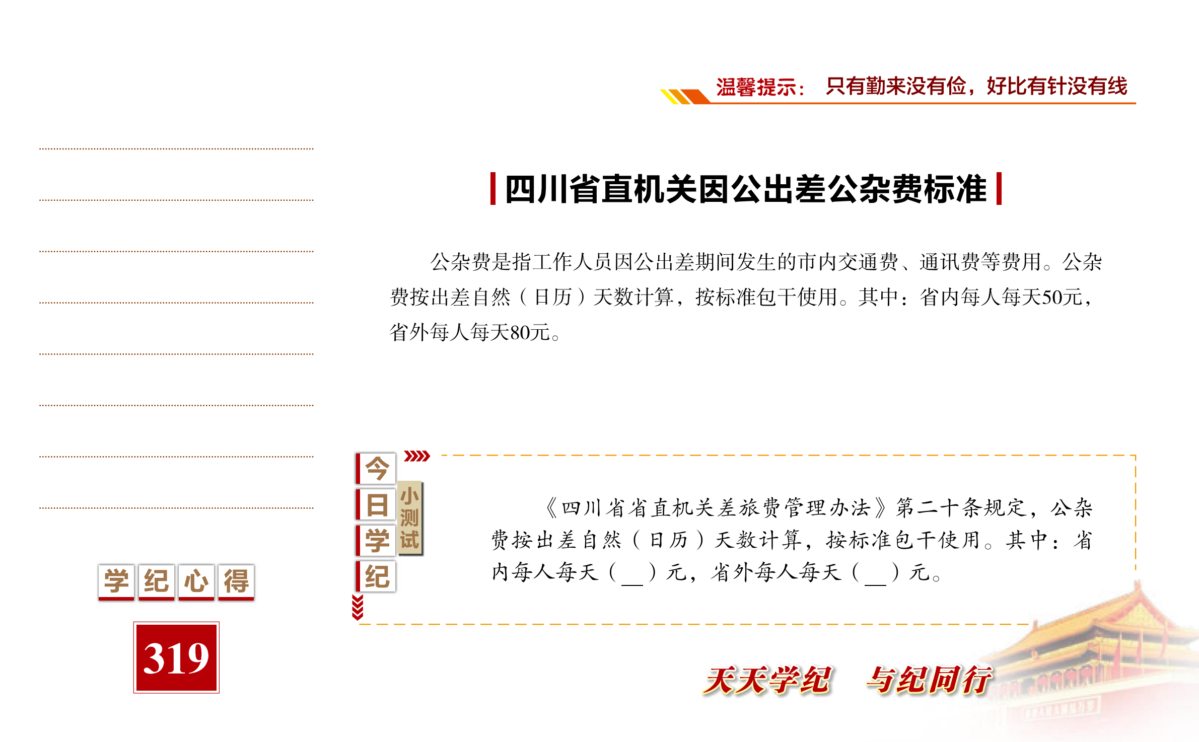 【天天学纪】2021年5月15日——四川省直机关因公出差公杂费标准