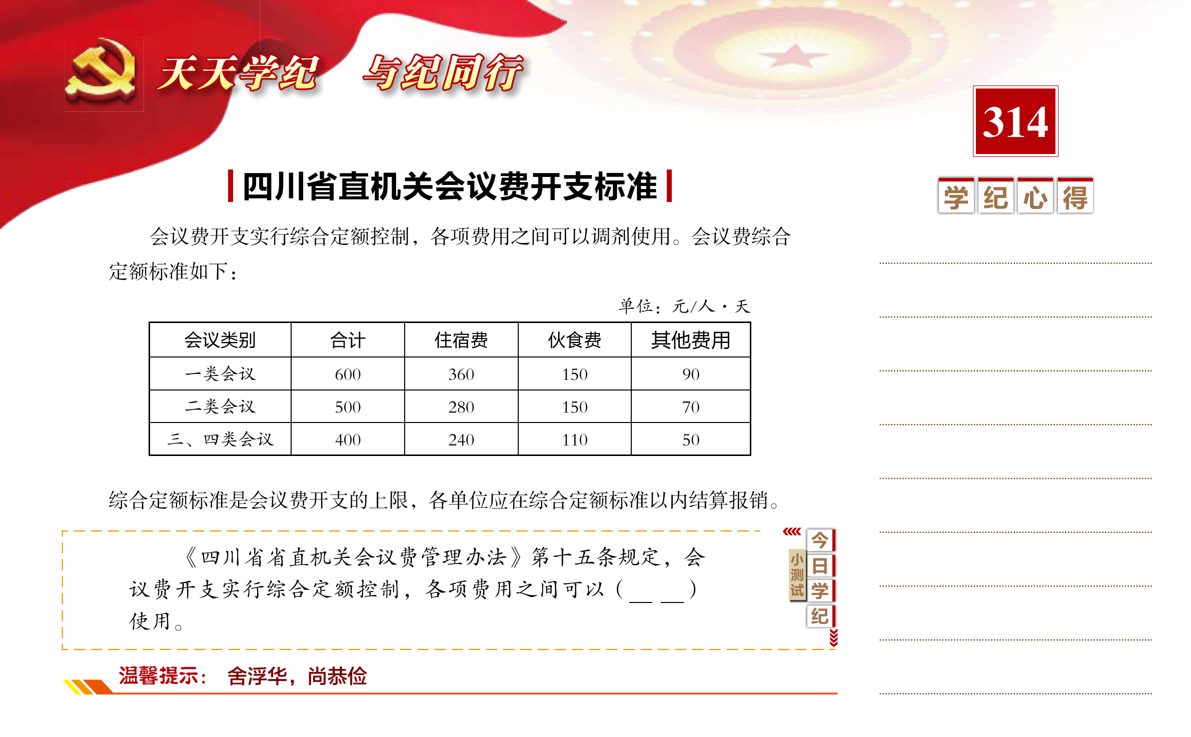 【天天学纪】2021年5月10日——四川省直机关会议费开支标准