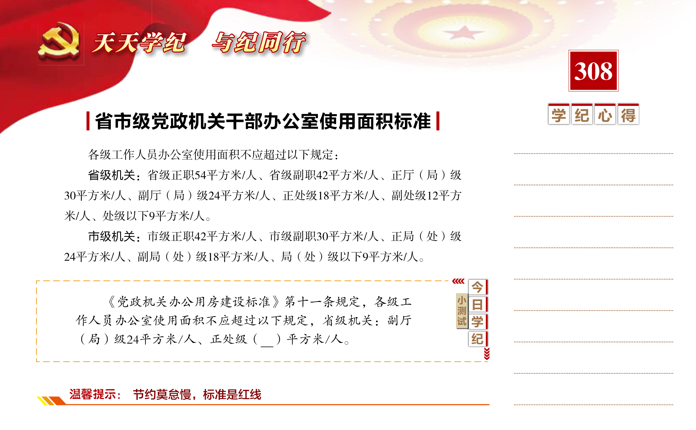 【天天学纪】2021年5月4日——省市级党政机关干部办公室使用面积标准
