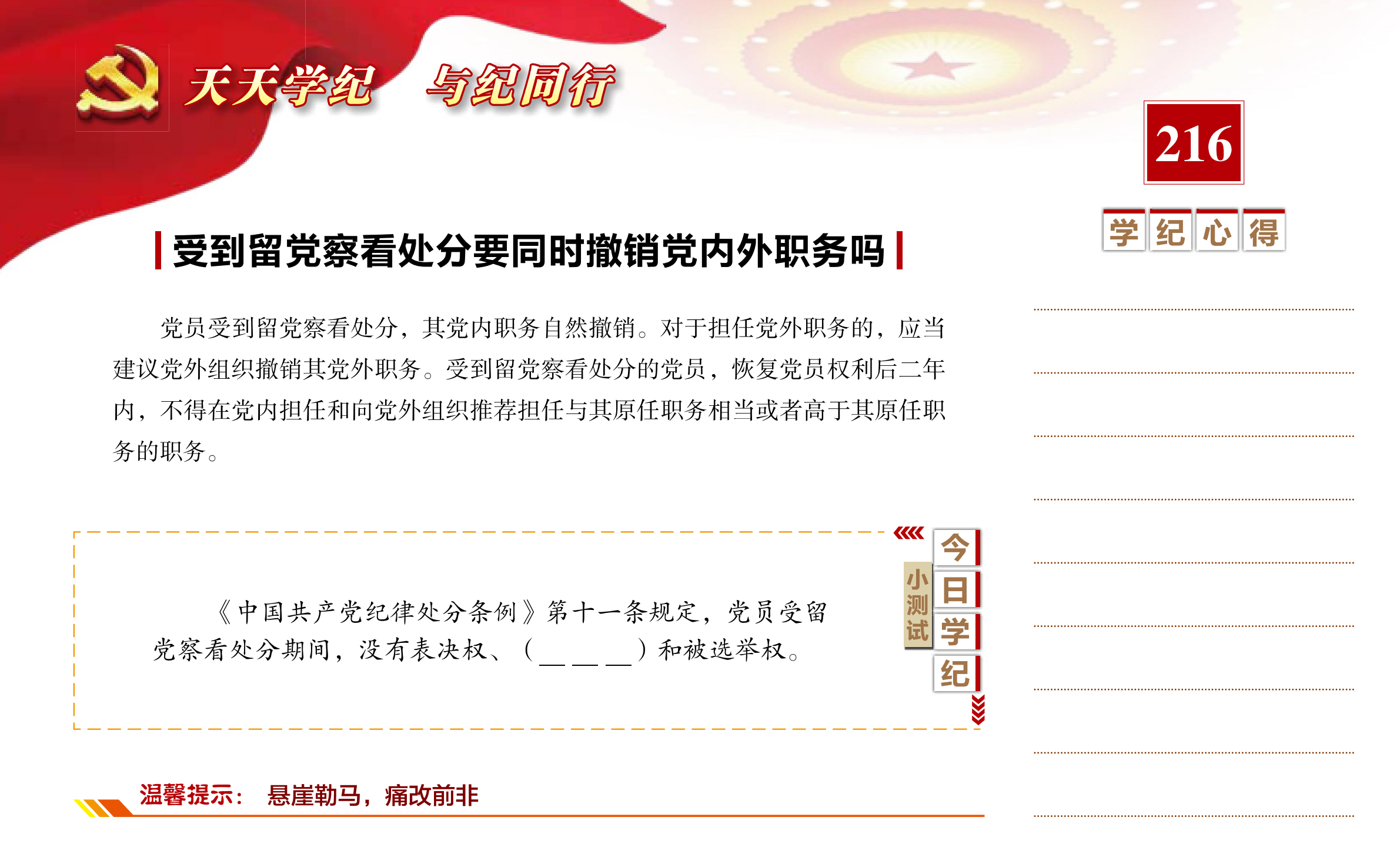 【天天学纪】2021年2月1日—受到留党察看处分要同时撤销党内外职务吗