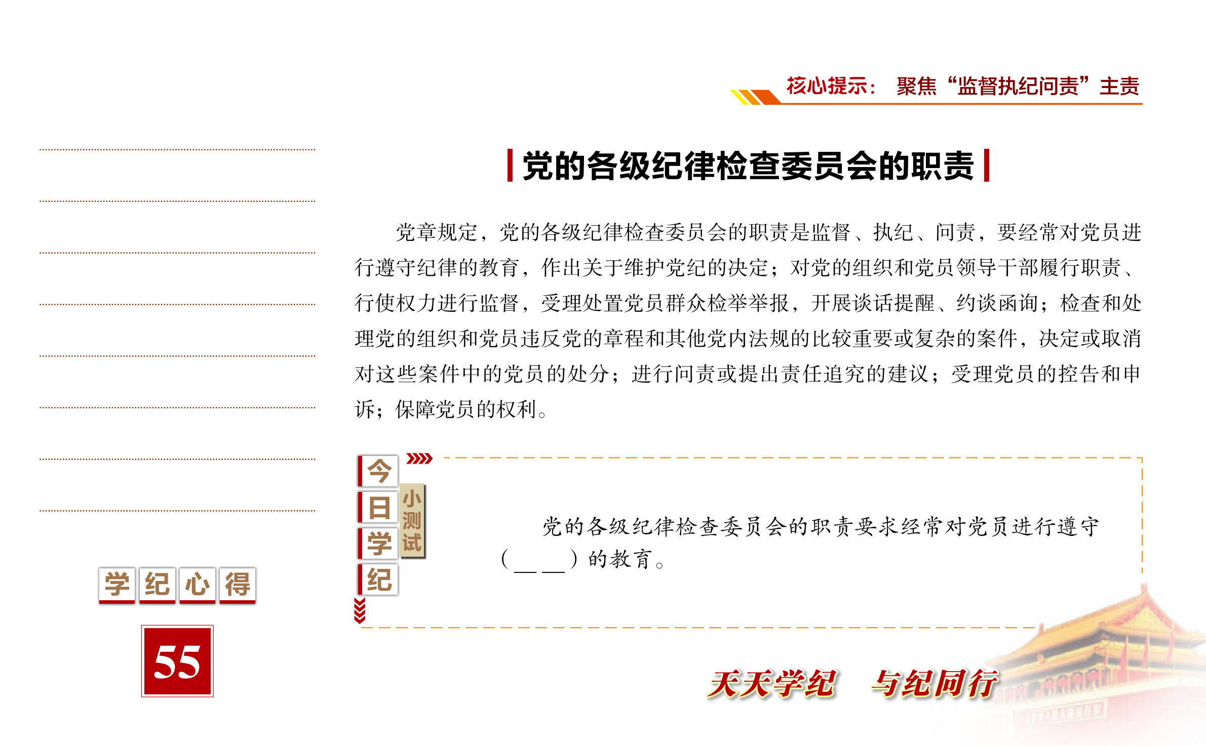 【天天学纪】2020年8月24日——党的各级纪律检查委员会的职责