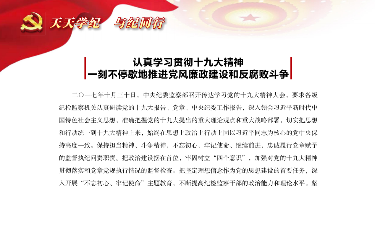 【天天学纪】2020年7月26日——认真学习贯彻十九大精神 一刻不停歇地推进党风廉政建设和反腐败斗争