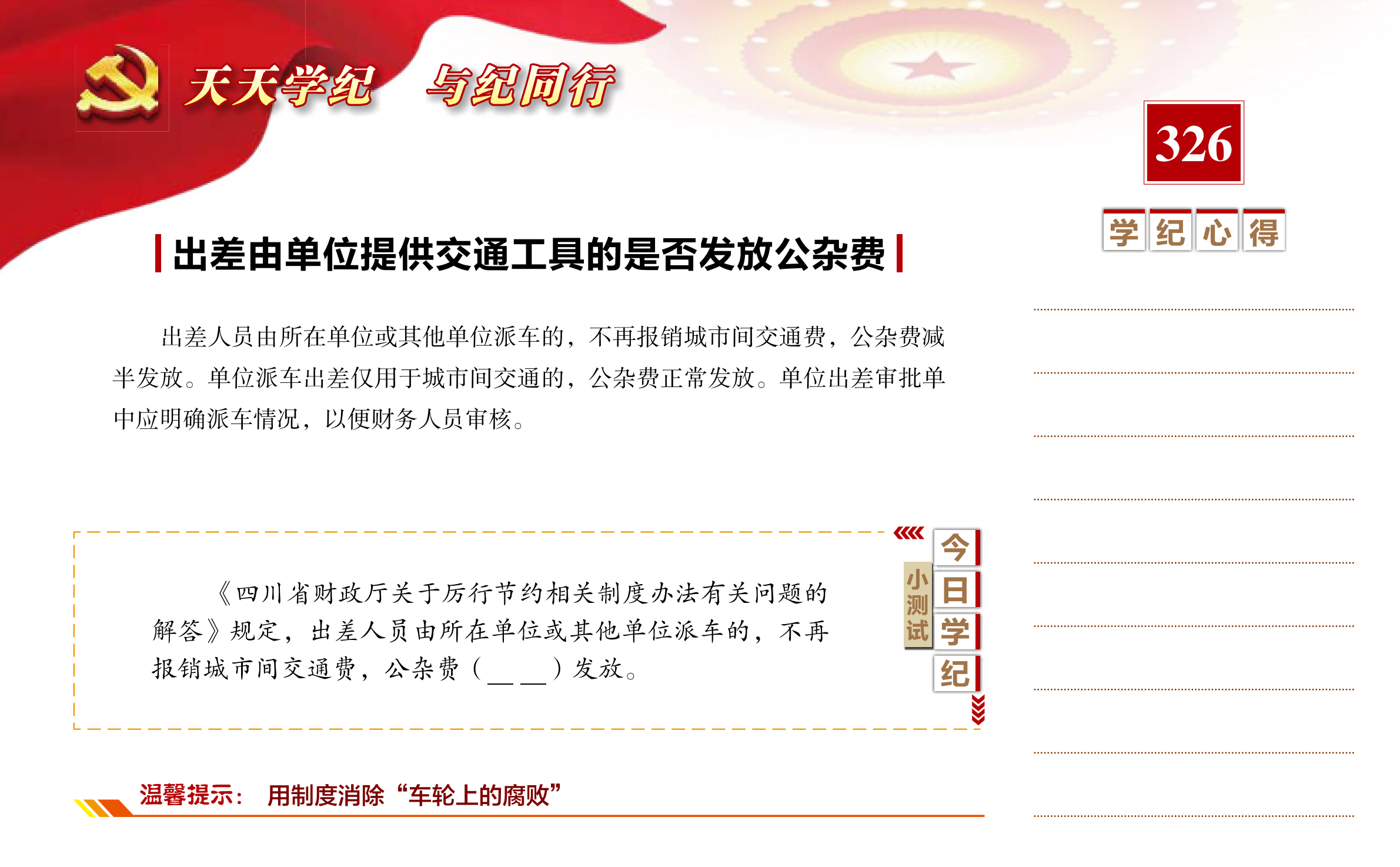 【天天学纪】2021年5月22日——出差由单位提供交通工具的是否发放公杂费