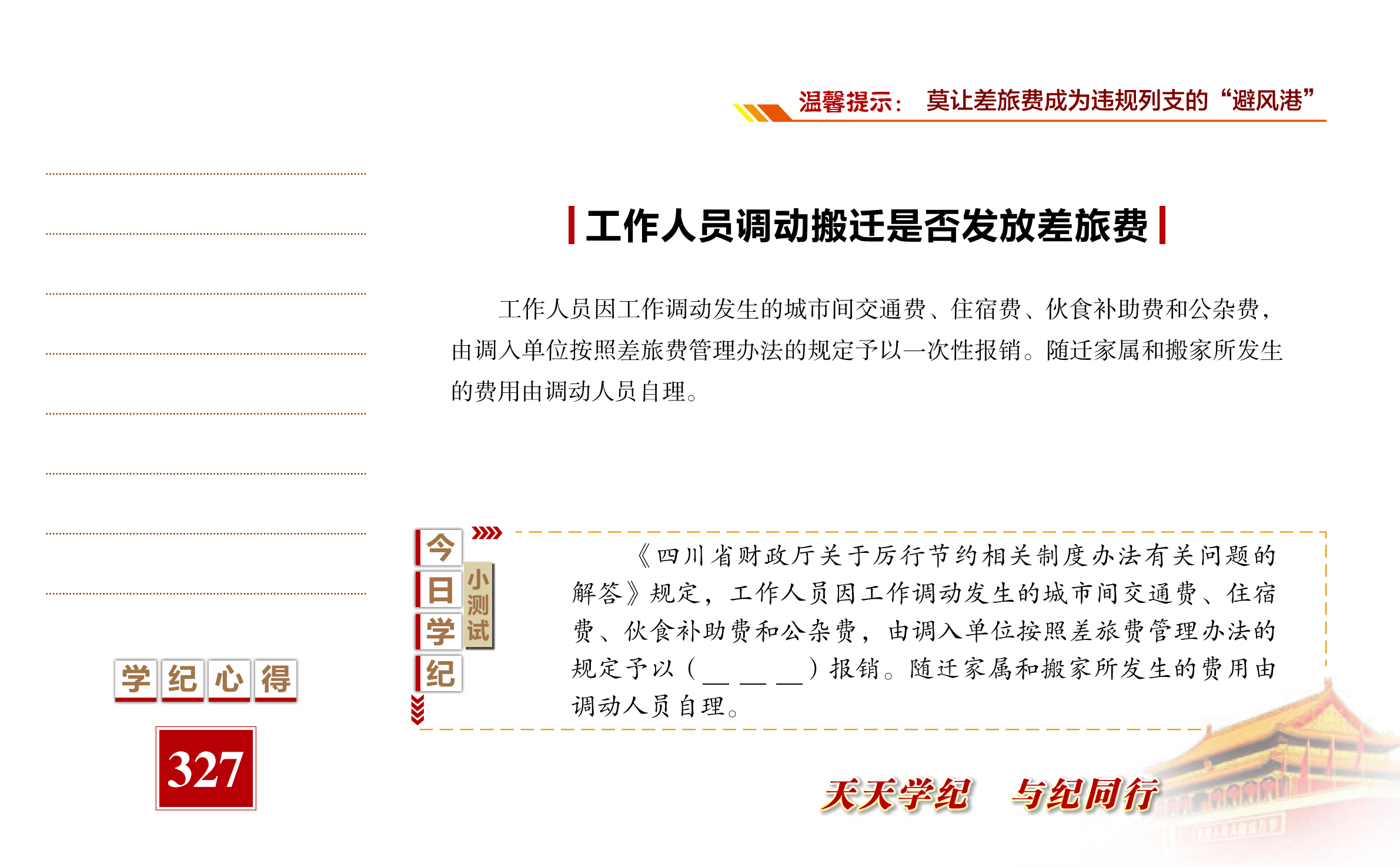 【天天学纪】2021年5月23日——工作人员调动搬迁是否发放差旅费