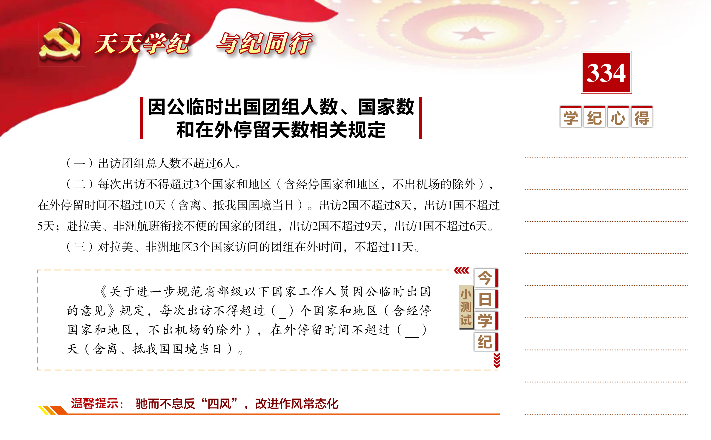【天天学纪】2021年5月30日——因公临时出国团组人数、国家数和在外停留天数相关规定