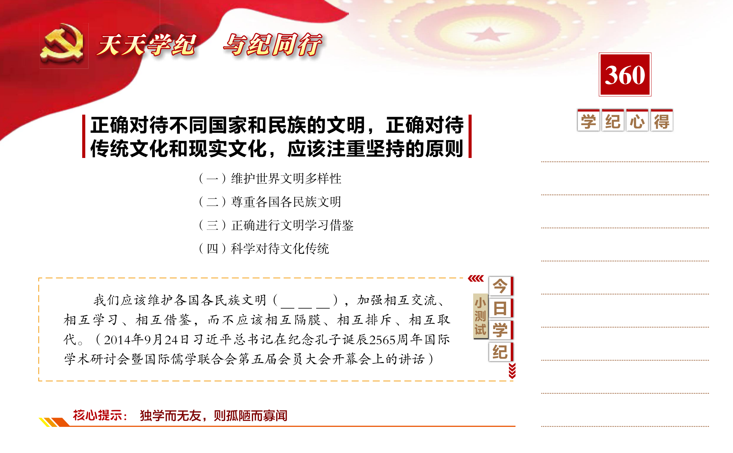【天天学纪】2021年6月25日——正确对待不同国家和民族的文化,正确对待传统文化和现实文化