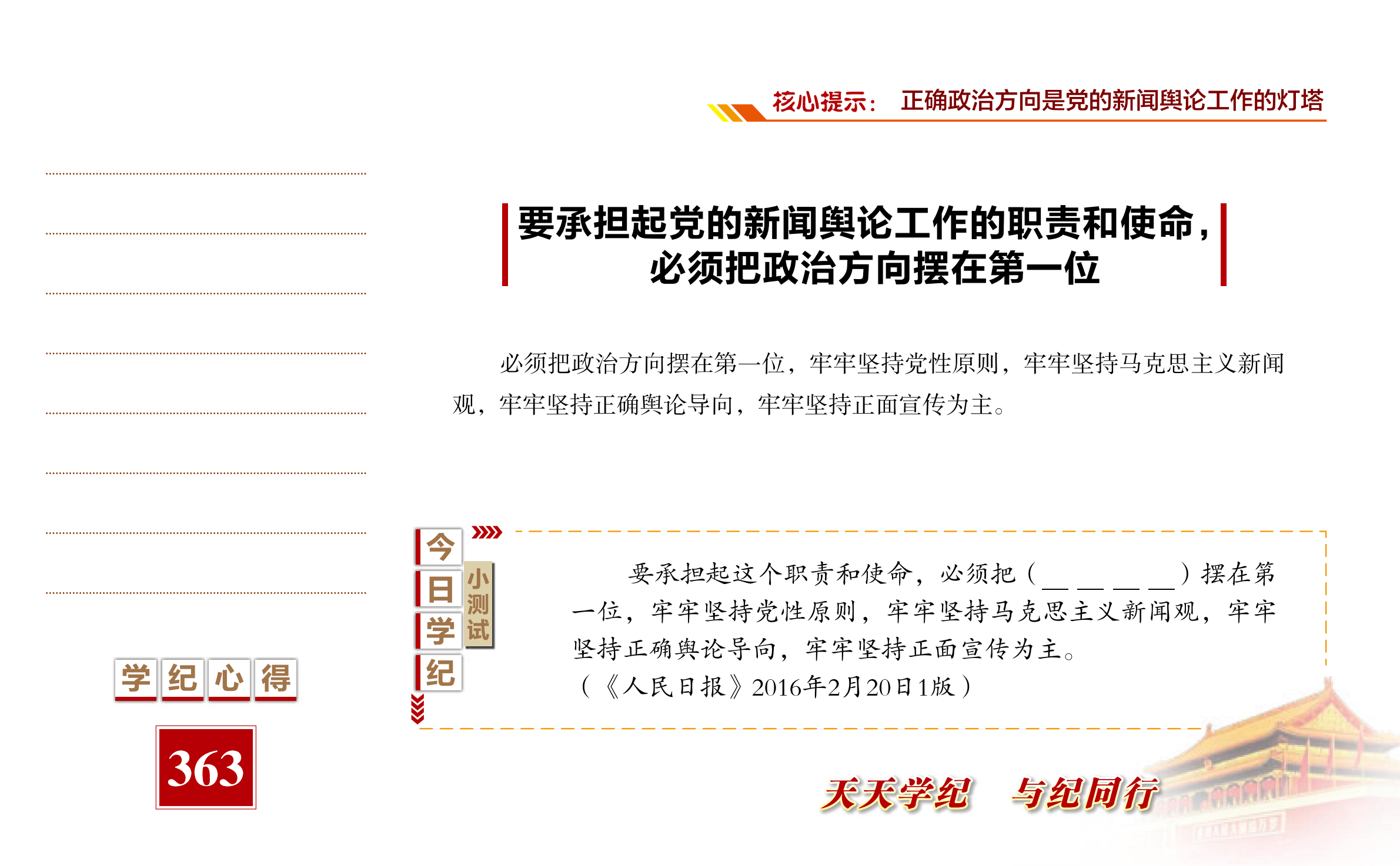 【天天学纪】2021年6月28日——要承担起党的新闻舆论工作的职责和使命,必须把政治方向摆在第一位