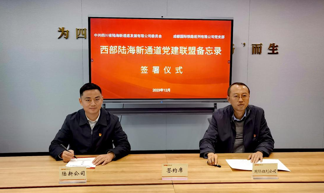 会上双方书记共同签署《西部陆海新通道党建联盟备忘录》,陆新公司董事、总经理朱强,成都国际班列公司支委委员、副总经理佘洪斌,双方相关部门负责同志参加活动。