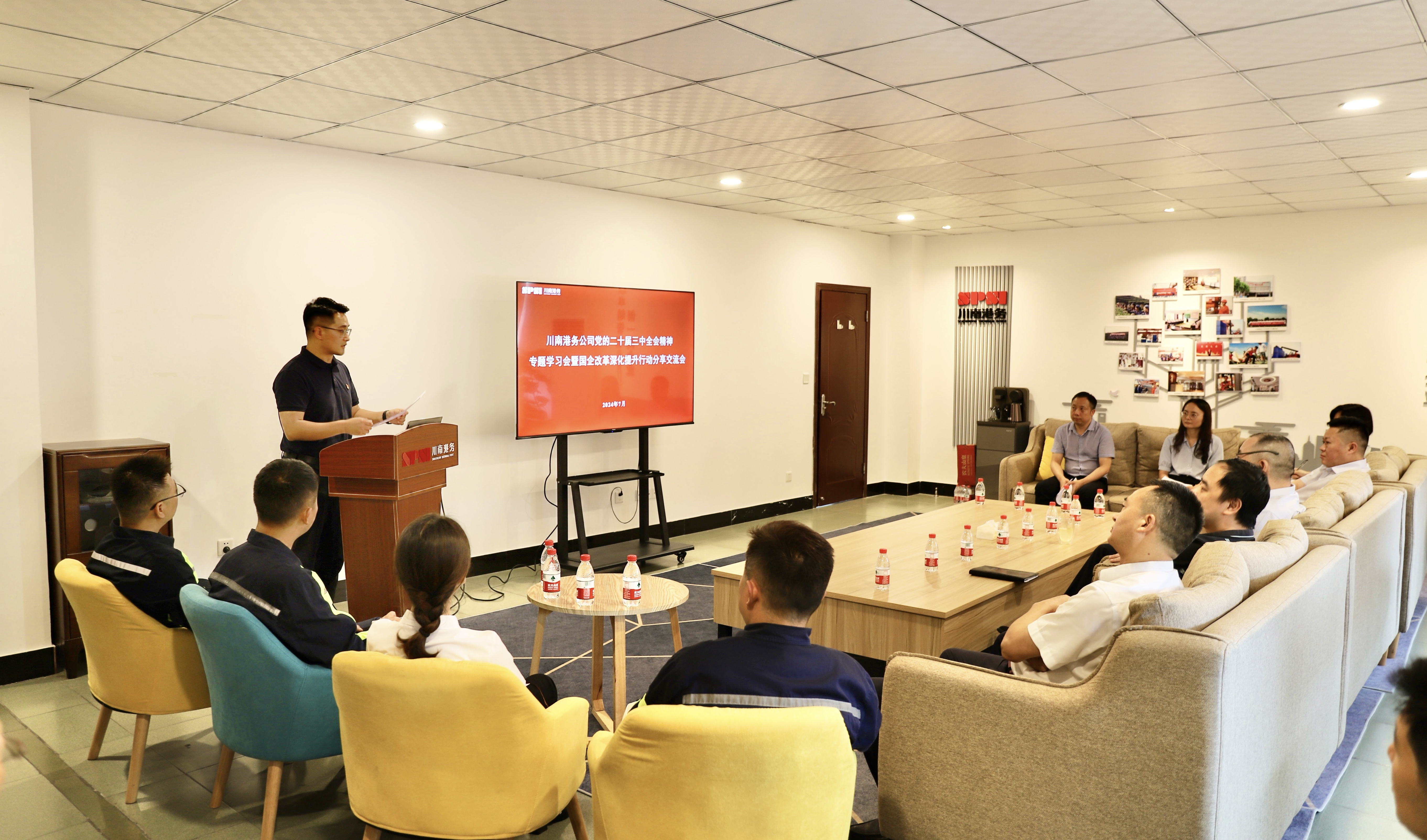 为深入学习贯彻党的二十届三中全会精神,7月24日,川南港务公司团委、本部党支部与泸州港第一、第二党支部在川南港务公司职工活动室联合开展党的二十届三中全会精神专题学习会暨“川南青年说”分享会,此次分享会以“国企改革深化提升行动”为活动主题。公司党员、入党积极分子、青年职工代表共计30余人参加活动。
