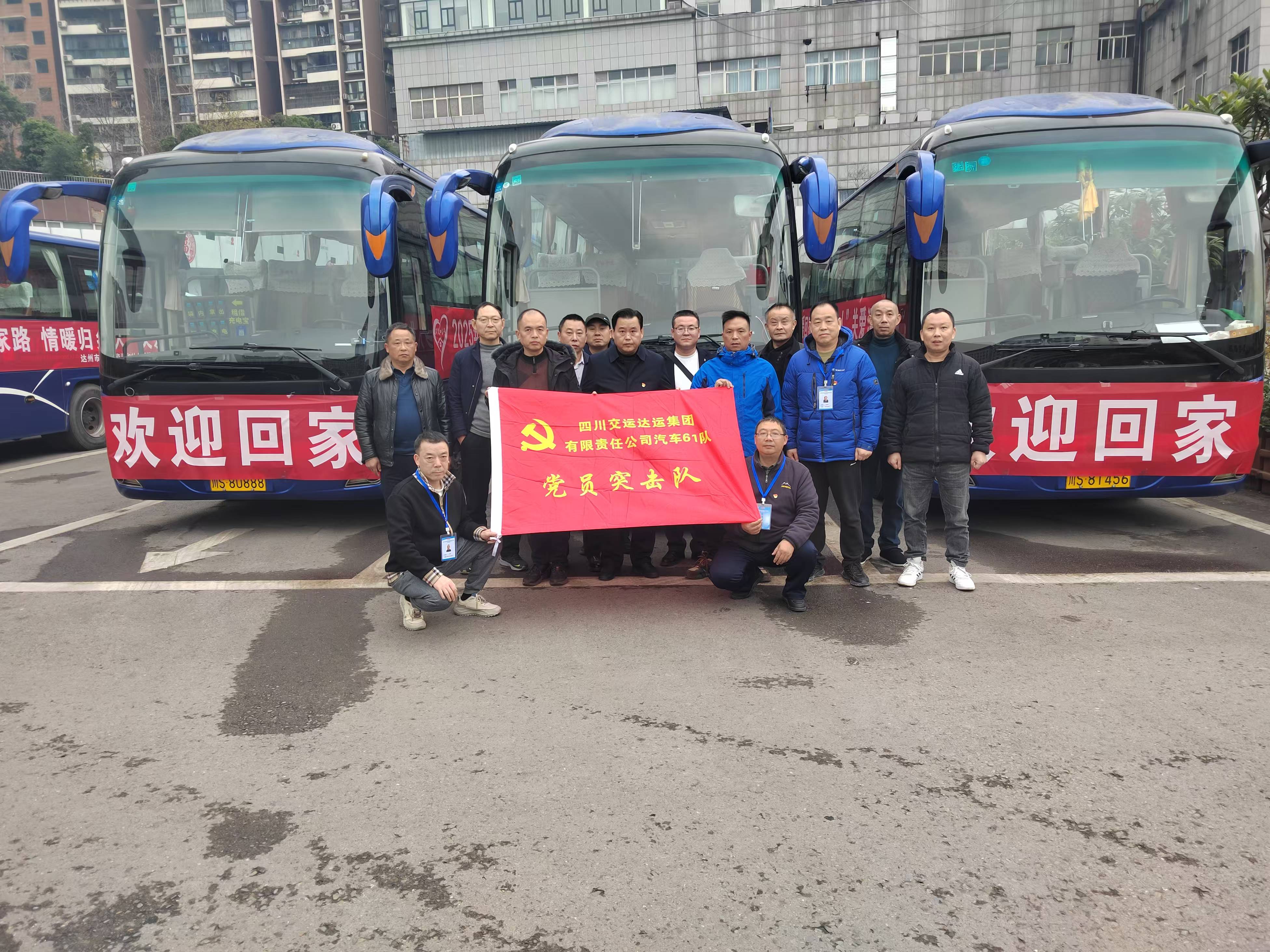 1月14日,春运第一天,为完成好达州市总工会“温暖回家路 情暖归乡人”关爱活动的运输保障任务,川交达运第二联合党支部、客运西(北)站党支部联合成立了党员突击队,精心挑选7台车况良好的大客车和10余名技术过硬的驾乘人员承担运输任务,将200余名从浙江、广东等地回家过年的务工人员平安送回了家。一名务工人员说,一踏上达州的土地,就真切体会到了“到站如到家”的感觉。