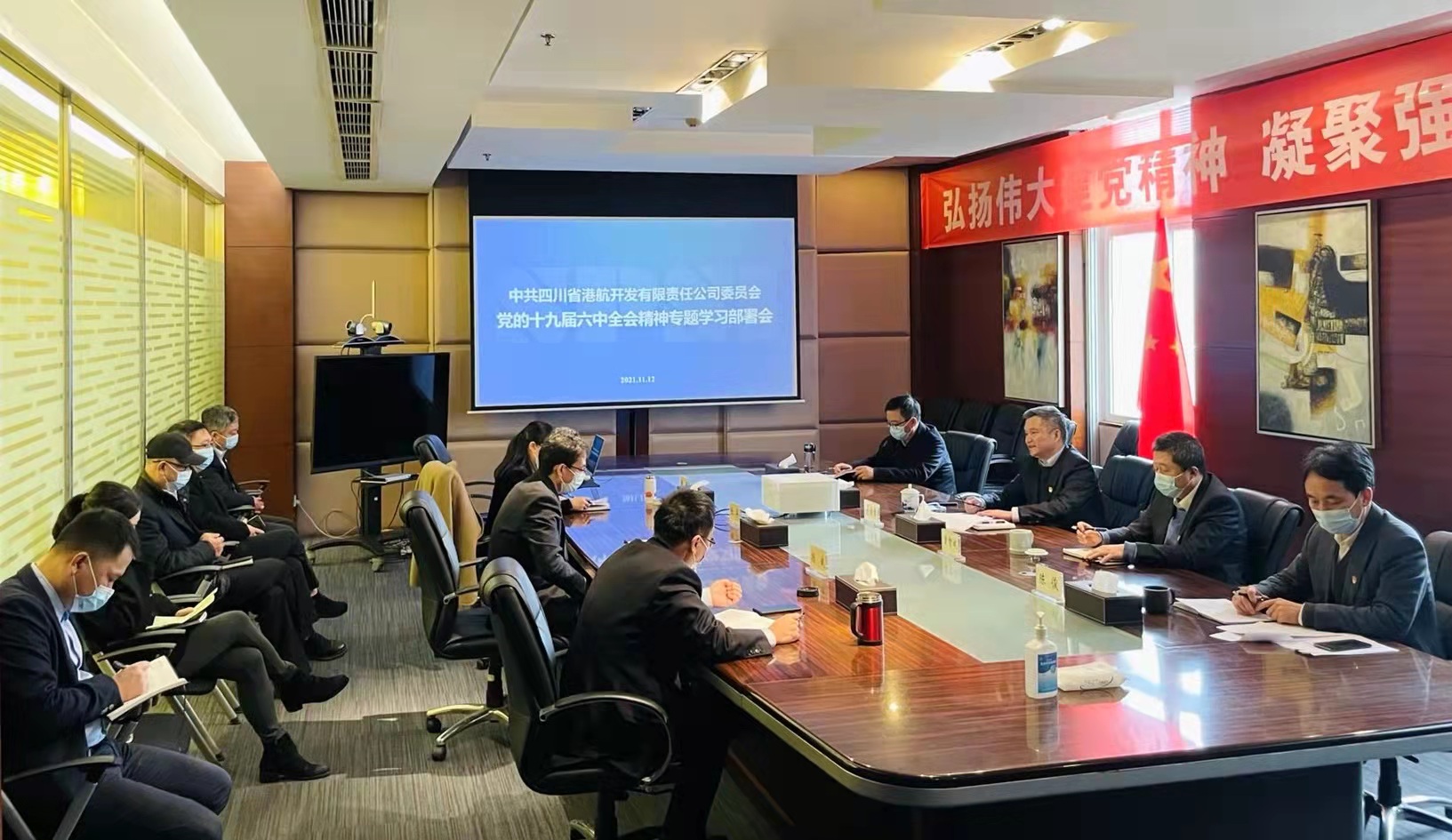 11月12日上午,港航公司党委召开党的十九届六中全会精神专题学习部署会,传达学习党的十九届六中全会精神,并对全面贯彻落实全会精神进行安排部署。公司党委书记、董事长罗宗全主持会议并讲话。