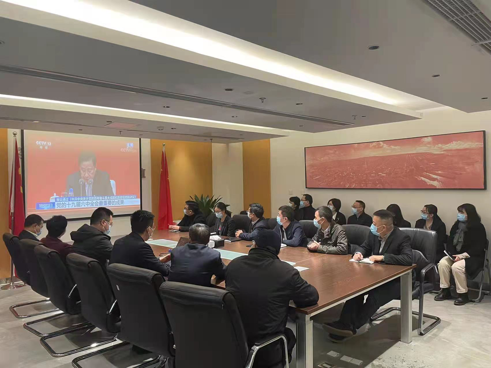 11月12日,雍景投资公司全体干部职工集中收看了党的十九届六中全会新闻发布会,认真聆听全会精神的介绍和解读,全面掀起学习宣传贯彻全会精神的浓厚氛围。