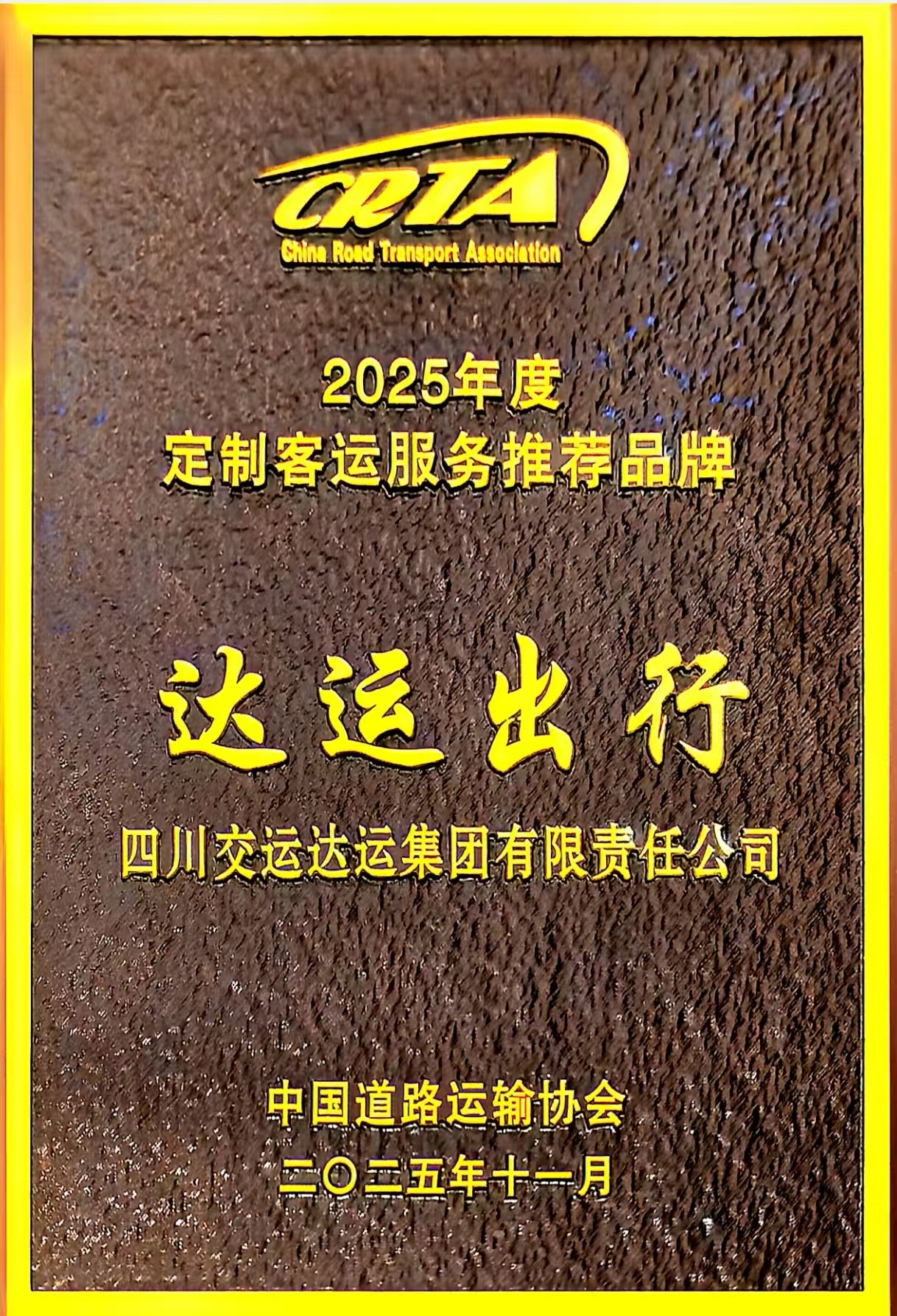 近日,中国道路运输协会“2025年度定制客运服务推荐品牌”评选结果正式揭晓,四川交运达运集团有限责任公司旗下“达运出行”平台凭借卓越的服务能力、创新的运营模式与良好的社会口碑,成功获评该称号。