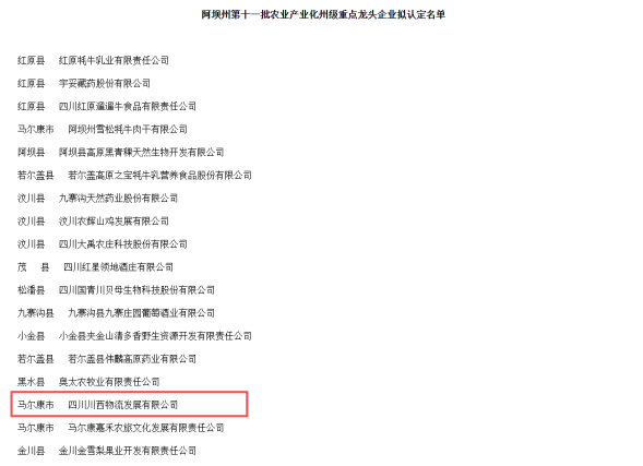 公司紧扣国家乡村振兴重大战略和省委省政府、国资委托底性帮扶决策部署,以“六高”产业发展理念为指引,通过打造高原高标准农业种植基地,构建起从田间到餐桌的全链条服务体系,持续推动产业联农带农落地见效,助力当地村民增收致富;通过持续运营马尔康牛羊定点屠宰加工厂,聚焦牛源收购与屠宰本地化,推进牦牛全产业链建设,打造可持续产业生态体系,为筑牢乡村振兴产业根基提供了坚实支撑,相关工作得到州政府的高度认可,荣获阿坝州农业产业化重点龙头企业称号。