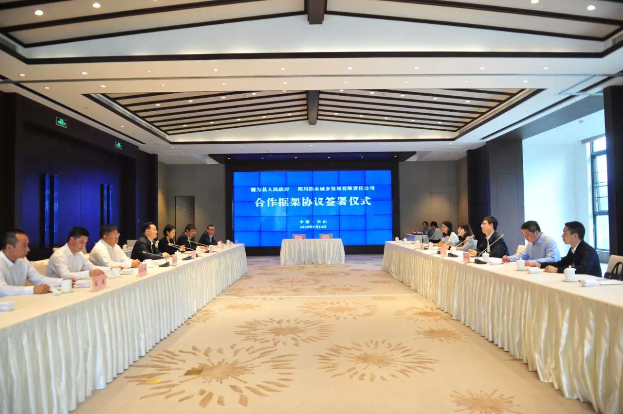 9月24日,四川省文化和旅游发展大会期间,清溪湖项目签约仪式在峨眉山市举行,滨水城乡公司党委书记、董事长、总经理万俊出席仪式,并代表滨水城乡公司与犍为县人民政府签署“巴蜀文化旅游走廊"示范区(清溪湖)项目《合作框架协议》。乐山市委副书记、市长张彤,市委常委、市政府副市长毛宁,犍为县委书记王策鸿等见证签约。