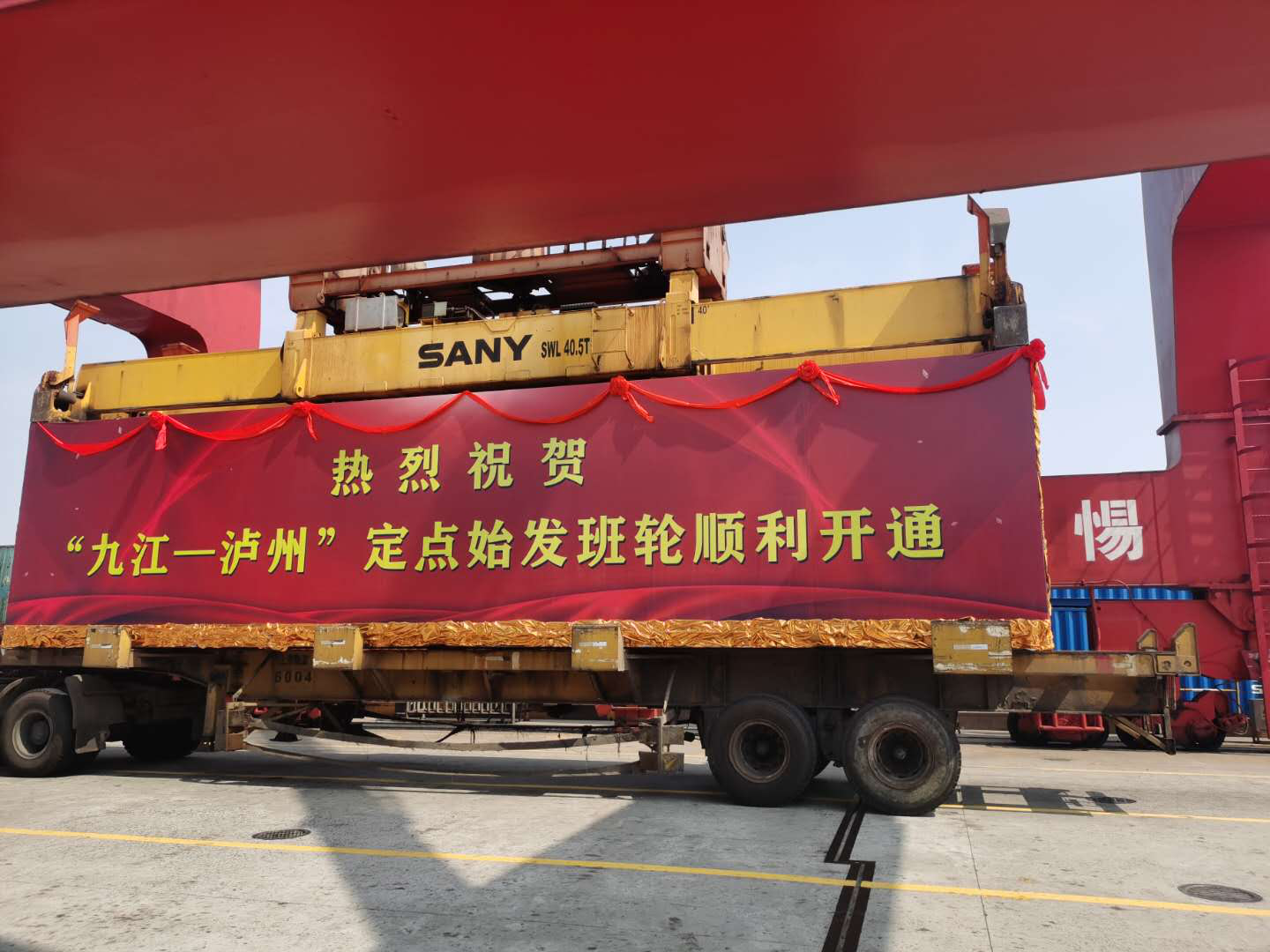 9月8日,“九江—泸州”始发定点集装箱班轮顺利首航,填补了九江港至川渝地区航线的空白。“九江—泸州”集装箱班轮航线由川南港务公司、中远海航运公司与上港集团九江港务公司携手共同打造,该班轮航线初期每周运营一班。截至目前,泸州港与长江港口定点始发航线增加至6条。