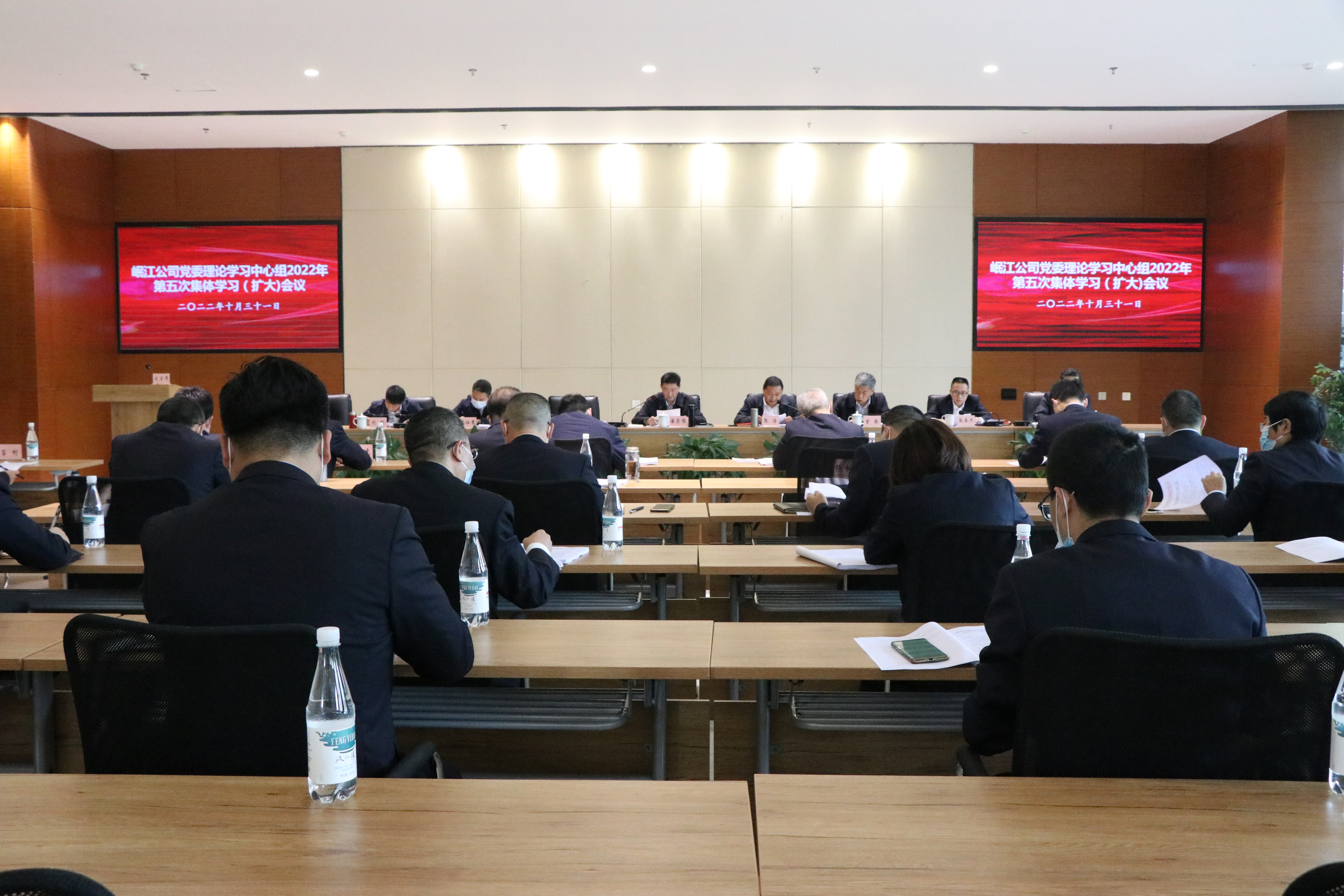 10月31日,岷江公司党委理论学习中心组召开2022年第五次集体学习(扩大)会。岷江公司党委书记、董事长潘荣伟主持会议,岷江公司及各分公司(指挥部)、龙溪口总包部领导班子成员,岷江公司本部中层副职及以上干部共计40余人参加会议。