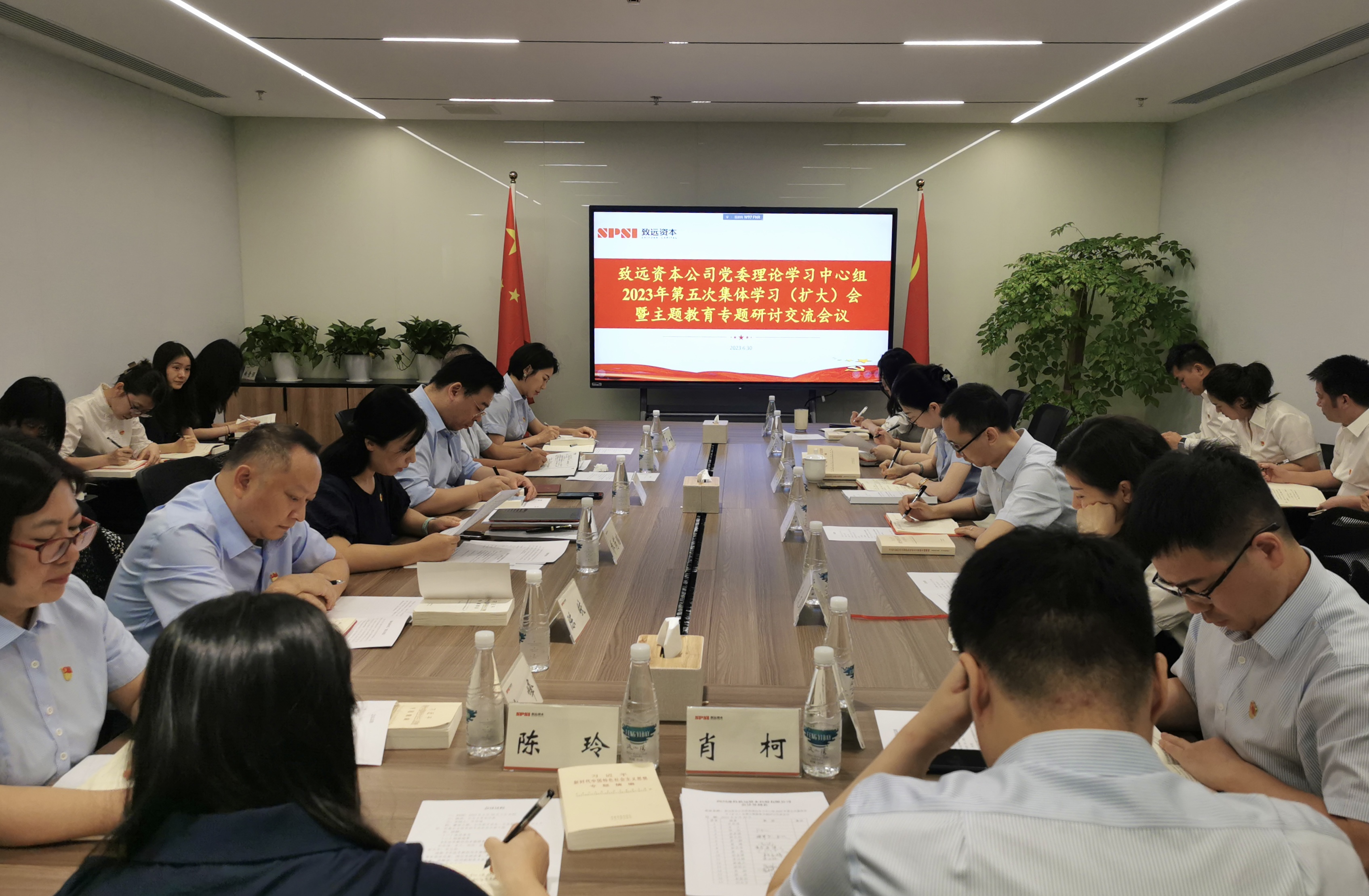 6月30日,致远资本公司召开党委理论学习中心组2023年第五次集体学习(扩大)会暨主题教育专题研讨交流会。致远资本公司党委书记、董事长乔芮瑶主持会议,公司党委理论学习中心组成员、中层副职(含)以上干部、所属企业中层以上干部及公司本部全体党员参加会议。