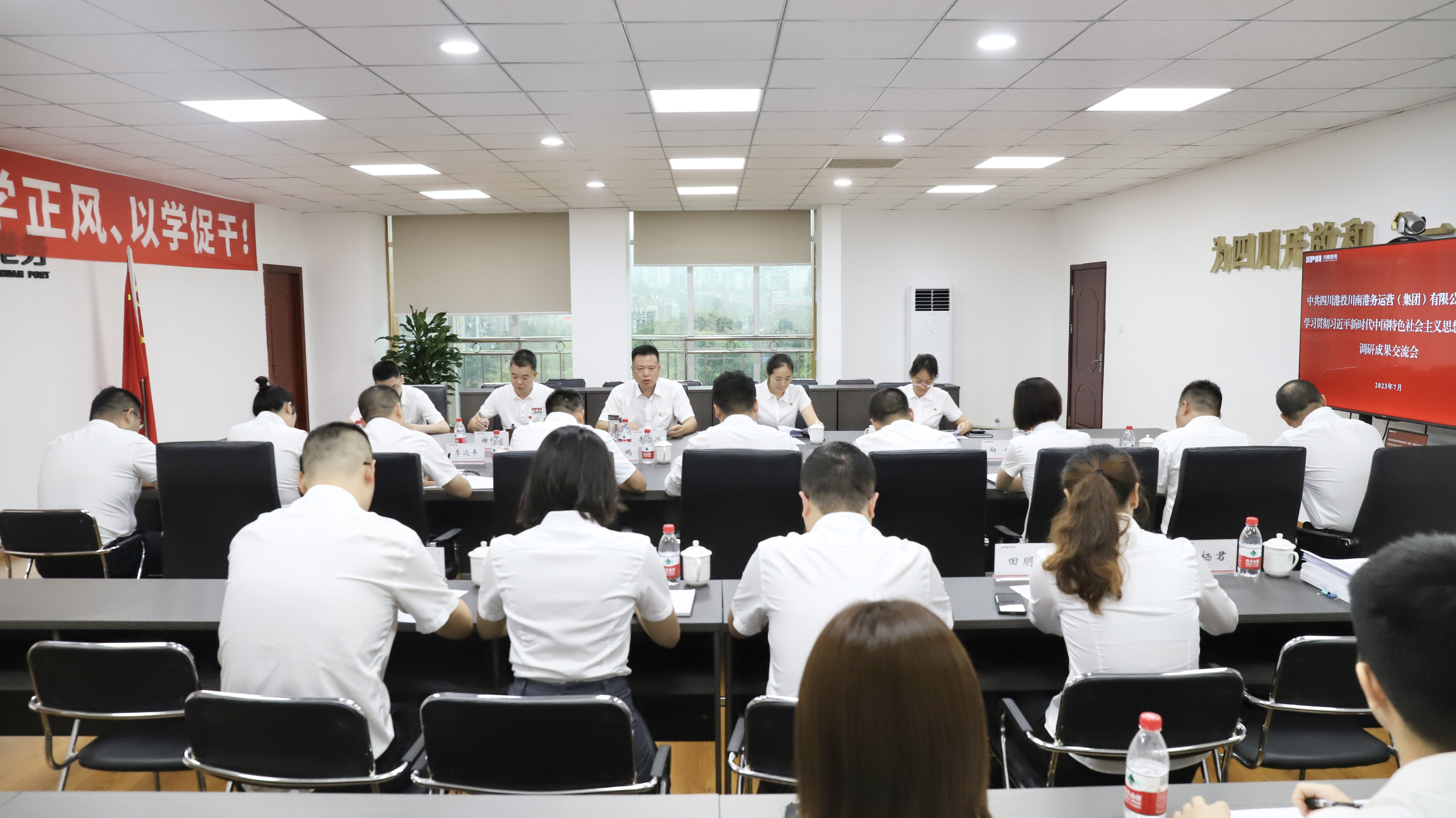 7月26日,川南港务公司党委召开主题教育调研成果交流会,集中交流分享了调查研究的开展情况和成果、成效,川南港务公司主题教育领导小组组长、公司负责人李小川主持会议并作总结讲话,集团公司主题教育联络组派员到会指导。