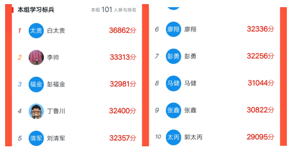 为进一步加强党员、干部思想政治教育,用好“学习强国”学习平台,在全公司营造比学赶超良好氛围,高标准高质量完成党史学习教育各项任务,根据“学习强国”学习积分排名情况,岷江公司对排名前10的白太贵、李帅、彭福金、丁鲁川、刘清军、廖翔、彭勇、马健、张鑫、郭太丙同志进行了通报表扬。